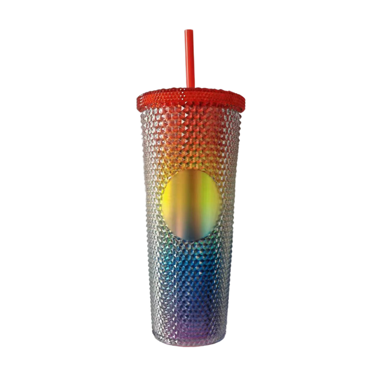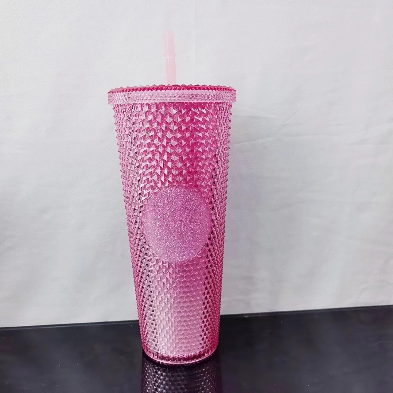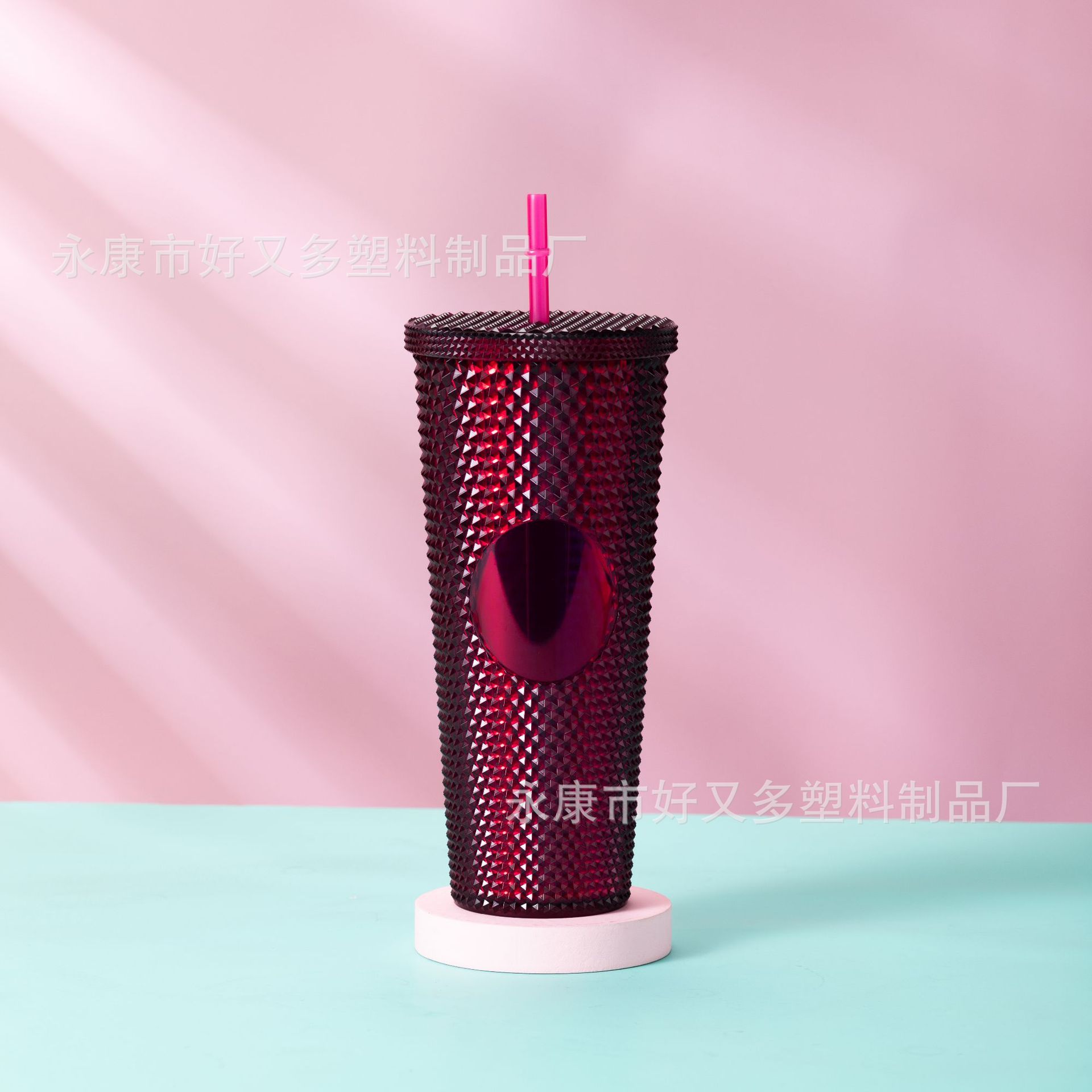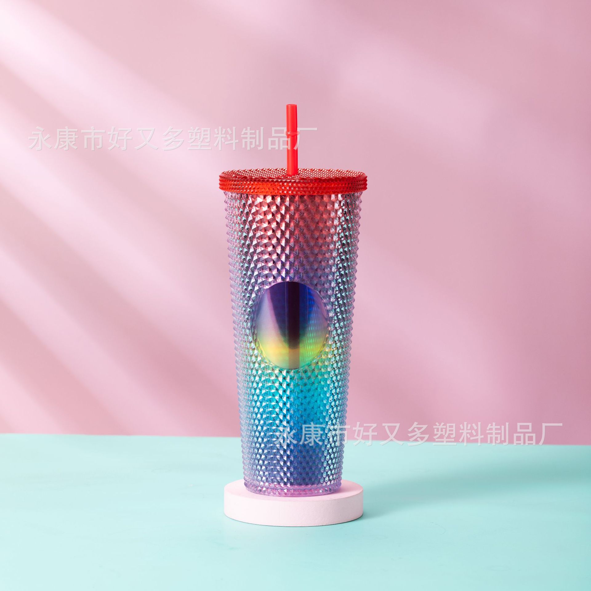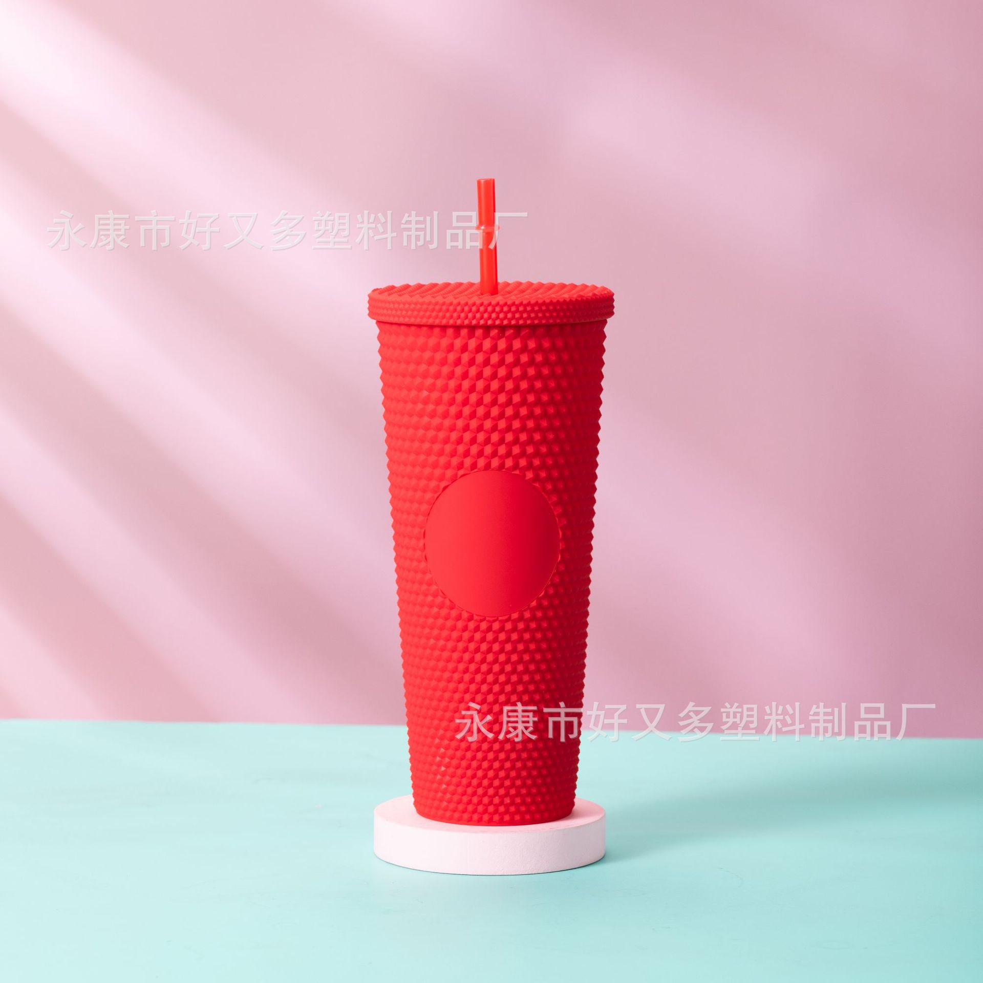 Специальное предложение, прямые поставки, трансграничная торговля, от 50 единиц, с принтом, двухслойный пластик, простой матовый, 710 мл, стакан для дуриана с трубочкой