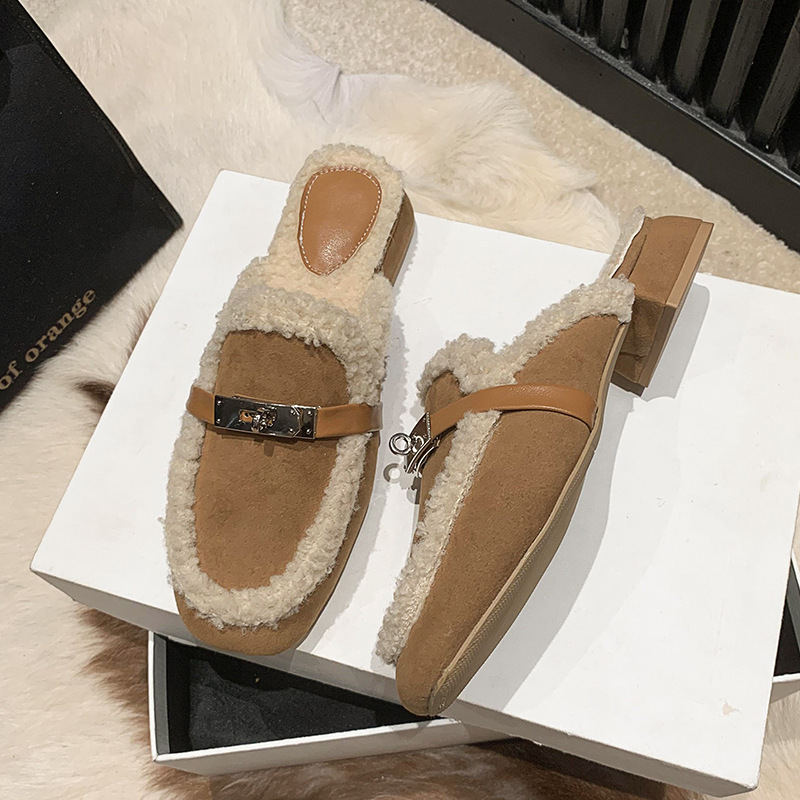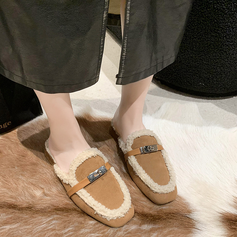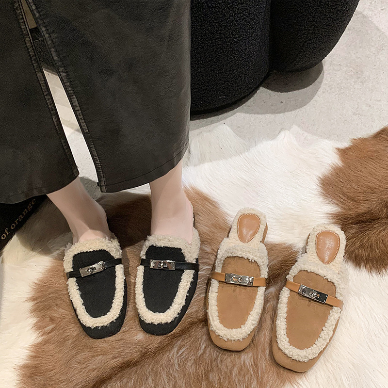 Главная страница > Шерстяные тапочки женские туфли на толстом каблуке осенью и зимой новые хлопчатобумажные тапочки ленивые
