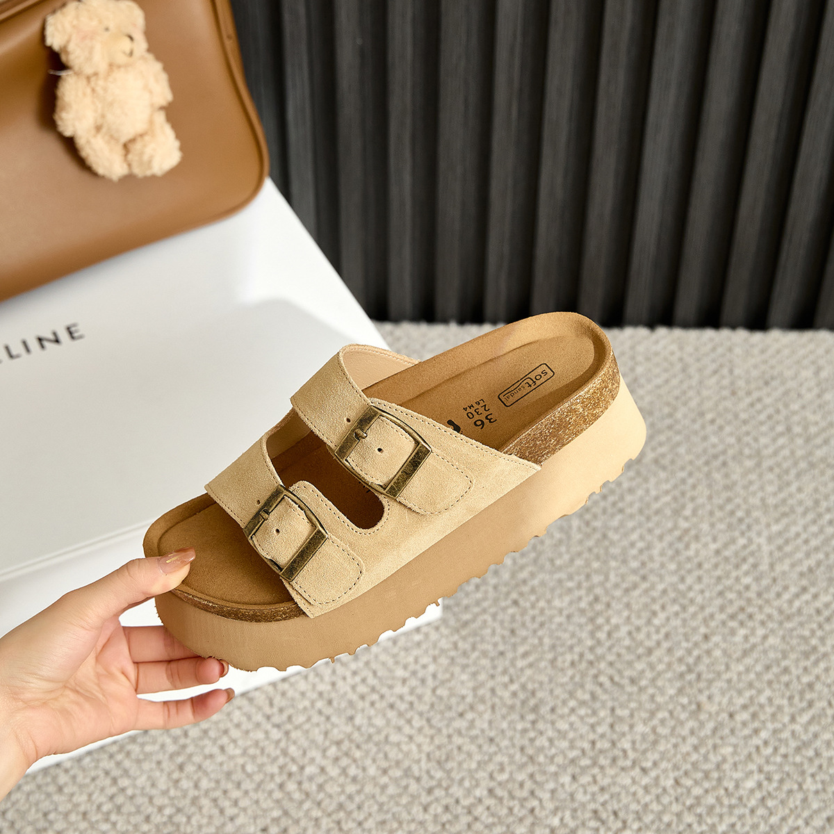 Главная страница > Женские туфли Birkenstock на толстой подошве 7 см, замшевые полуботинки из натуральной кожи с закрытым носком, в японском стиле, увеличивающие рост, для невысоких женщин.