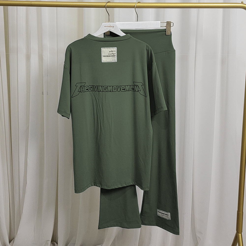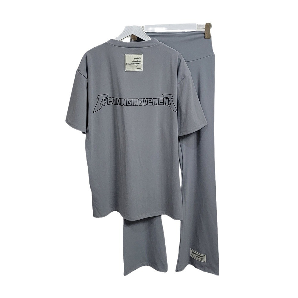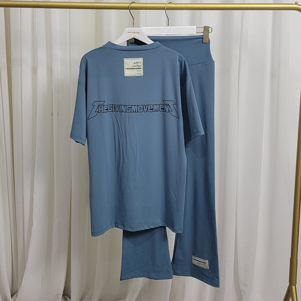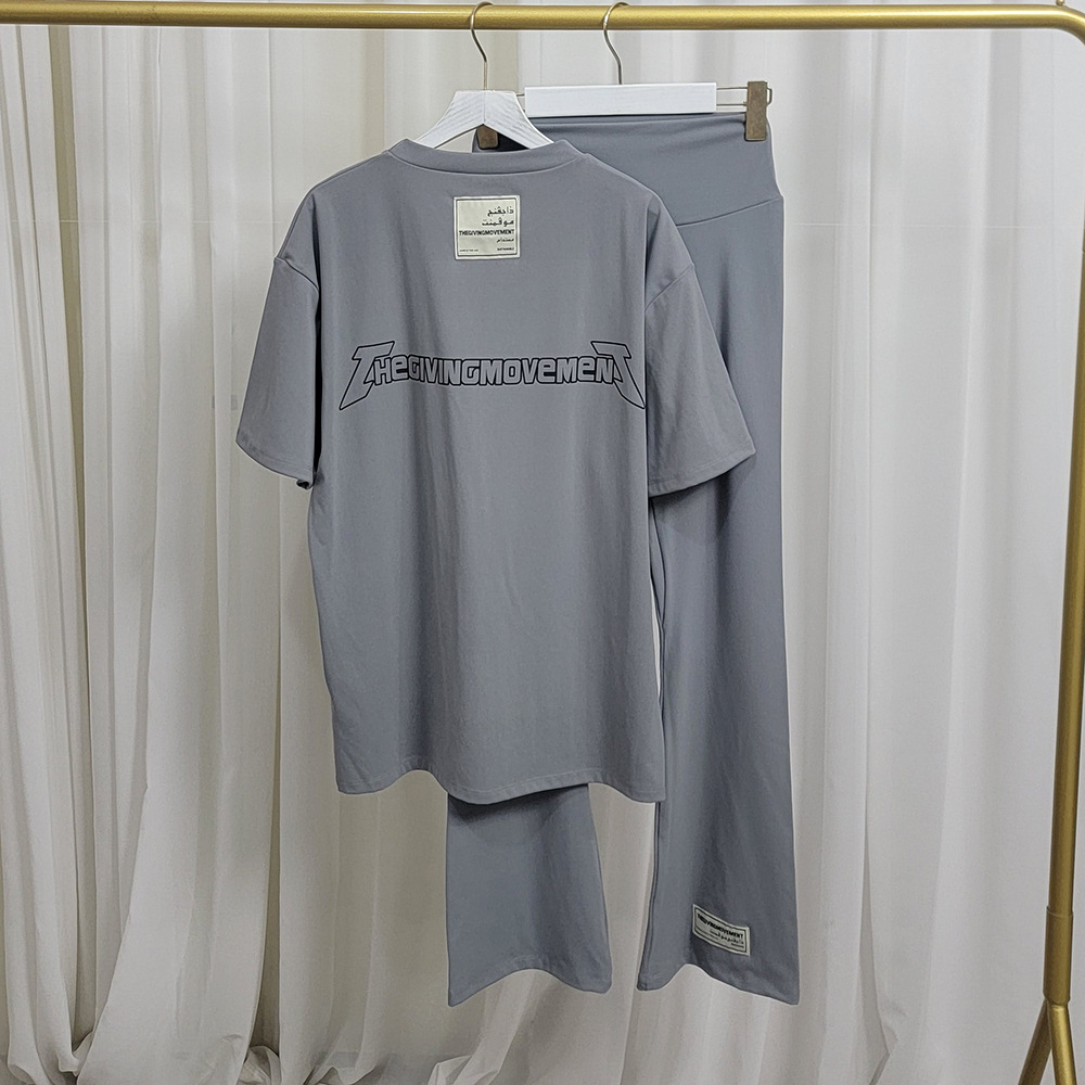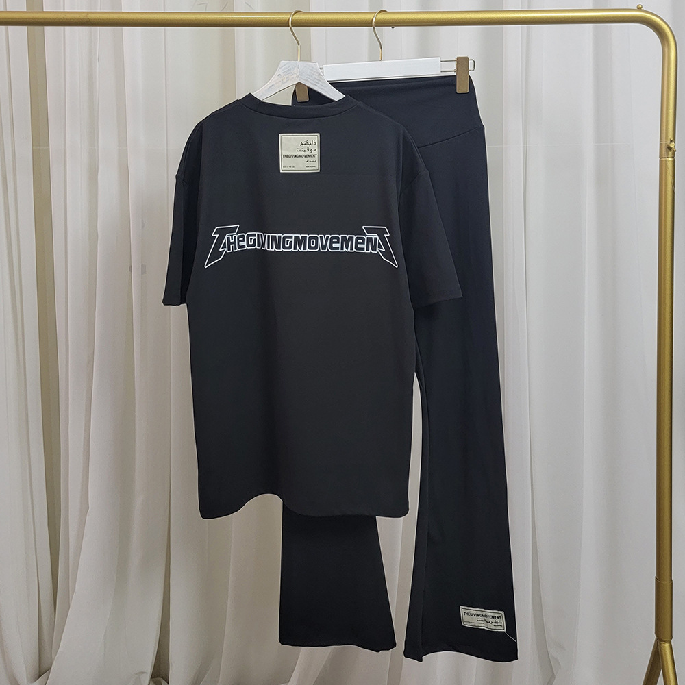 Главная страница > Новый женский костюм TGM, свободная футболка с принтом + расклешенные Леггинсы для йоги, трансграничная Модная брендовая женская одежда