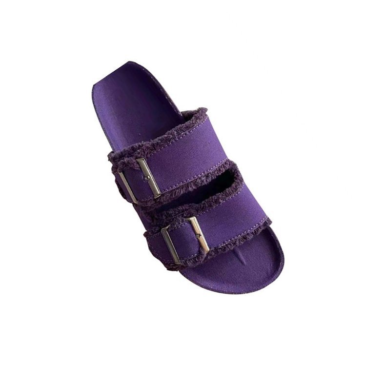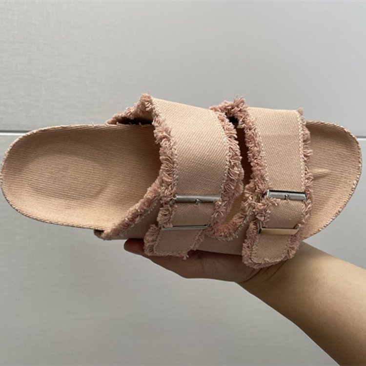 2023 летние новые иностранные торговые Большие размеры европейские и американские повседневные однотонные холщовые джинсовые тапочки на плоской подошве с пряжкой для женщин в наличии