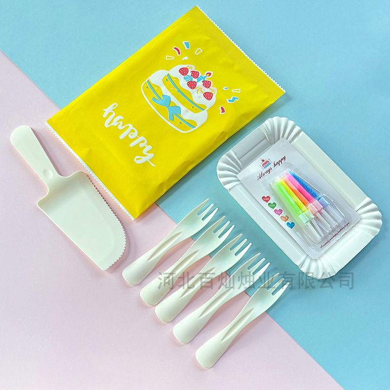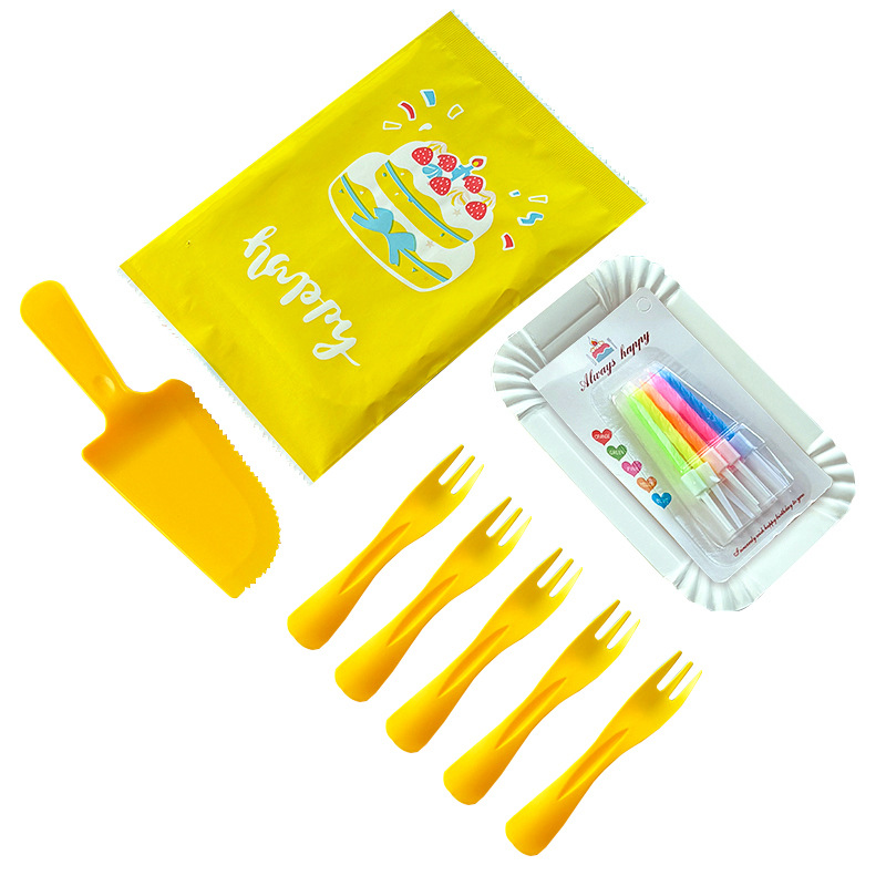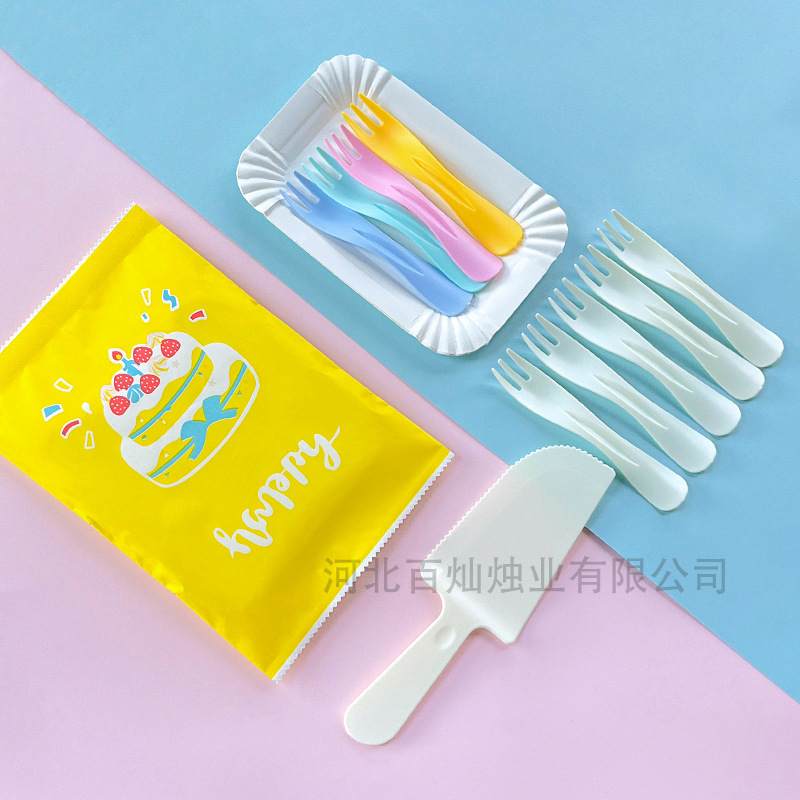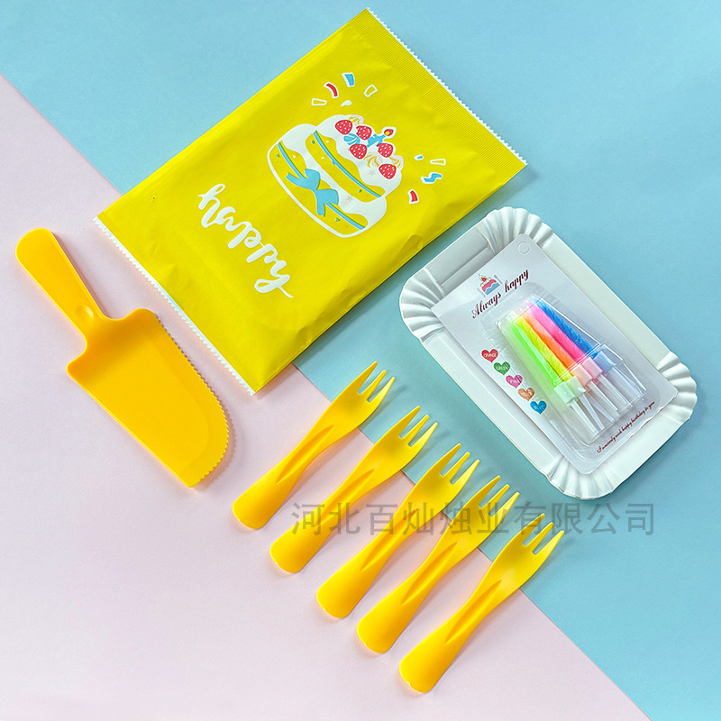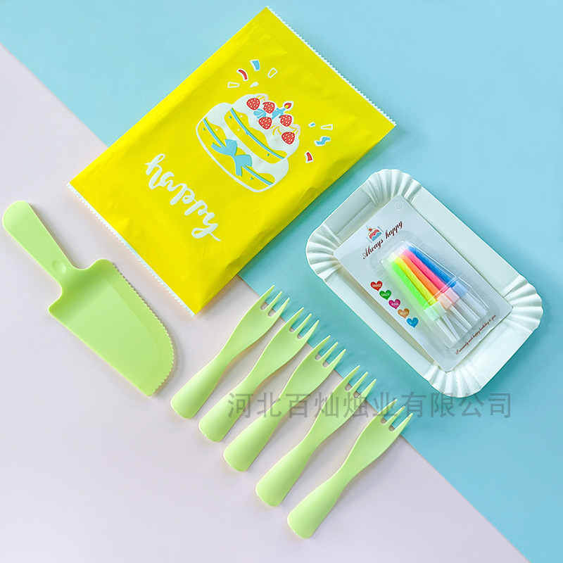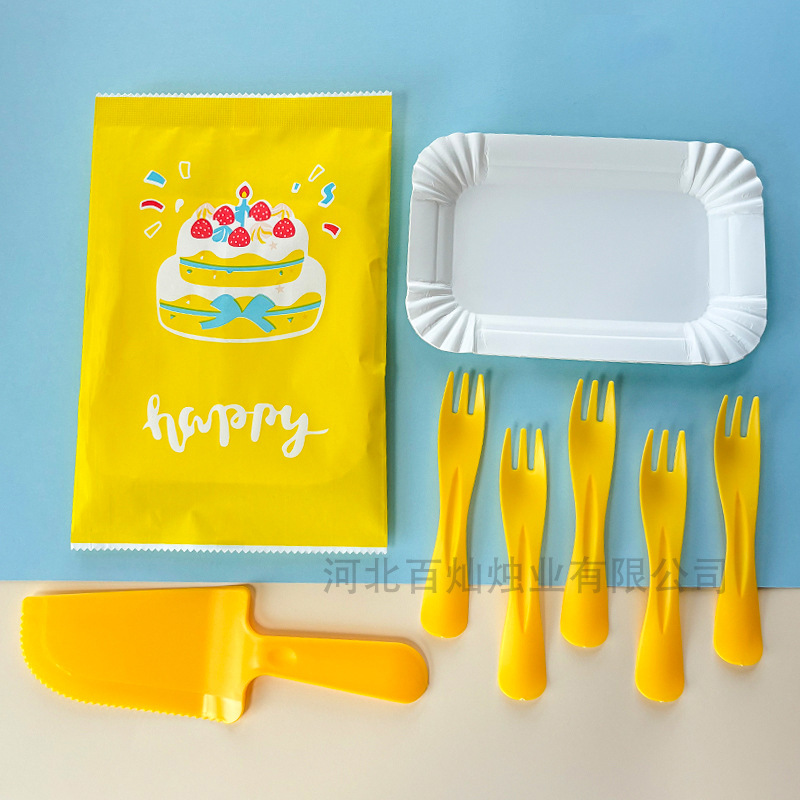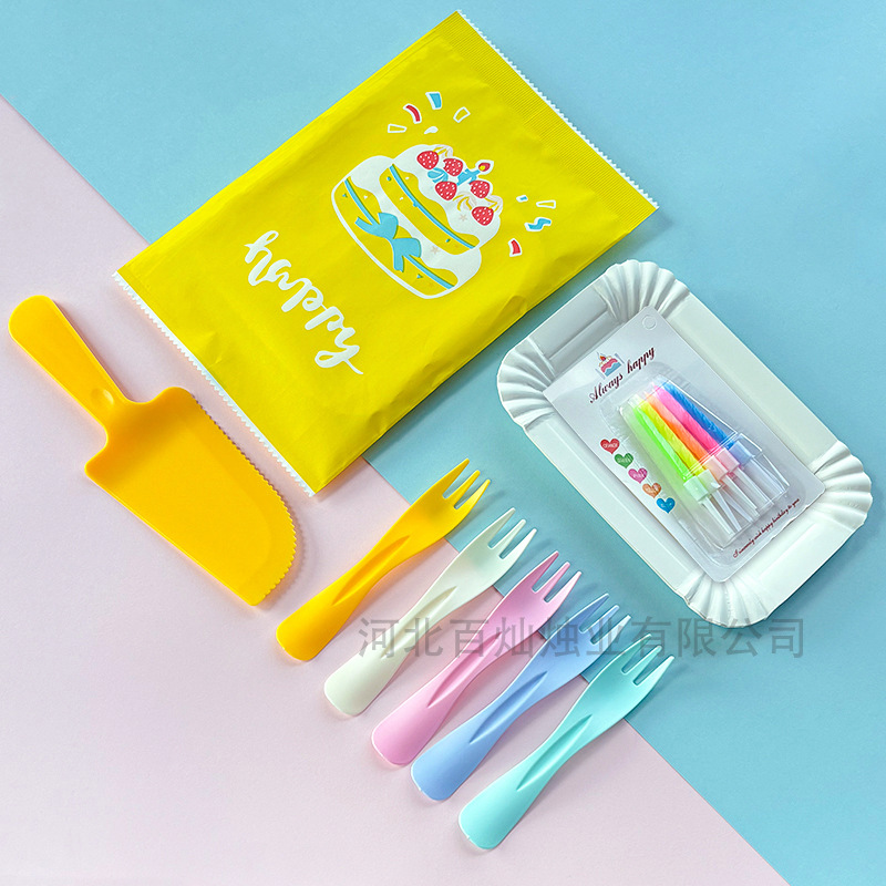 День рождения торт тарелка одноразовый набор ножей, вилка, бумажная тарелка, вилка, вилка, тарелка, вилка, свеча, пищевая смесь для торта, столовая посуда