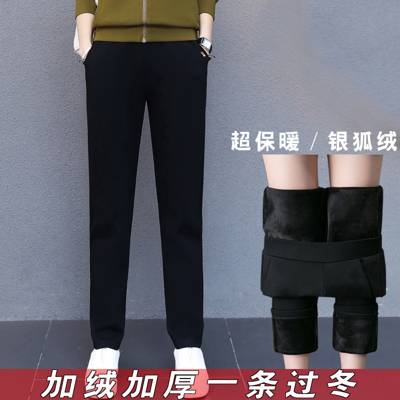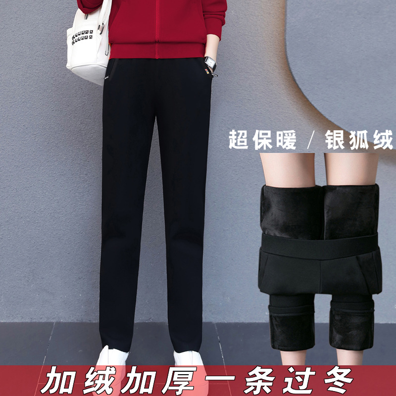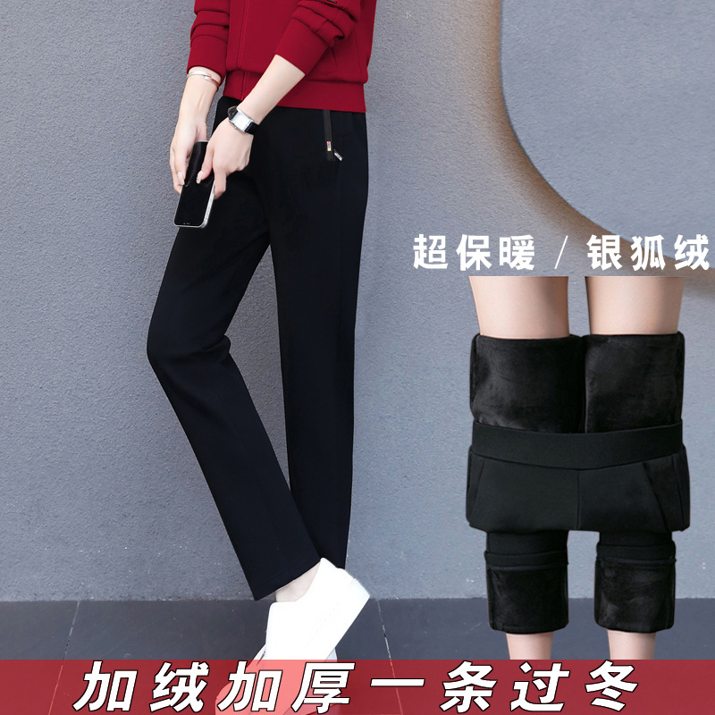 Главная страница > 2024 осень и зима женская бархатная молния карманные одиночные брюки мода минус возраст толстый снаружи носить эластические спортивные брюки для отдыха