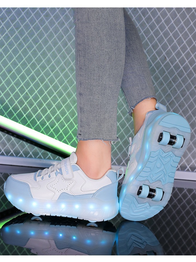 Детские кроссовки Студенческие роликовые коньки Девушки роликовые кроссовки Двойной колесный деформированный мальчик коньки трансграничная внешняя торговля свечение