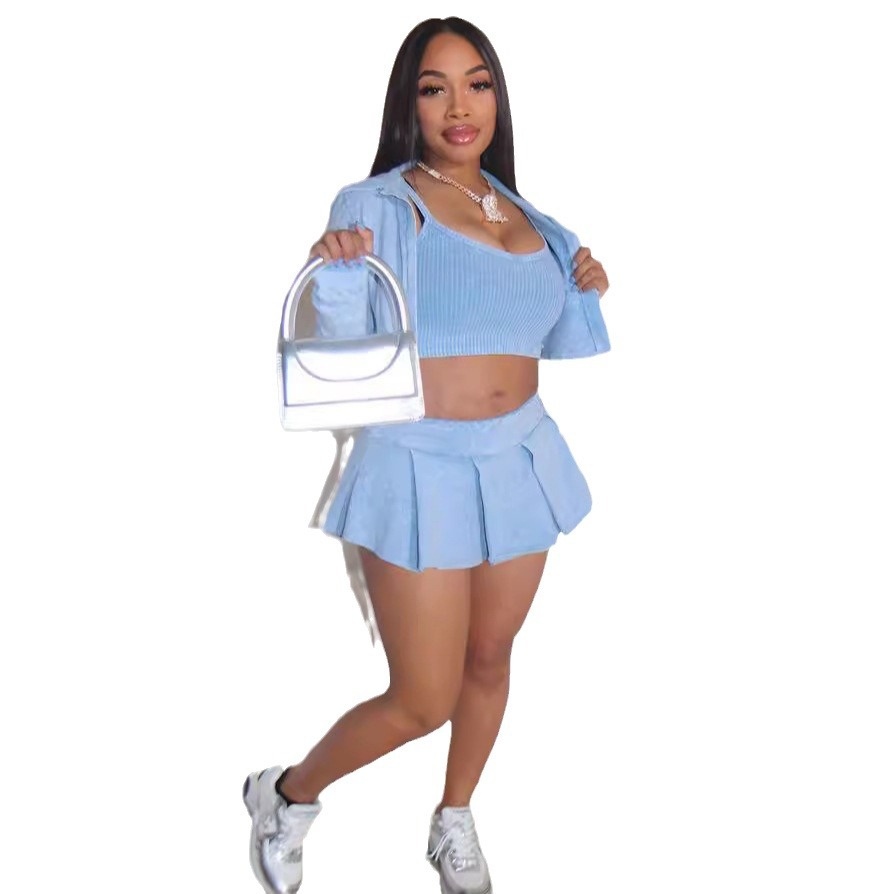 Европейская и американская женская одежда Amazon Independent Station стирает рубашку жилет юбка из трех частей