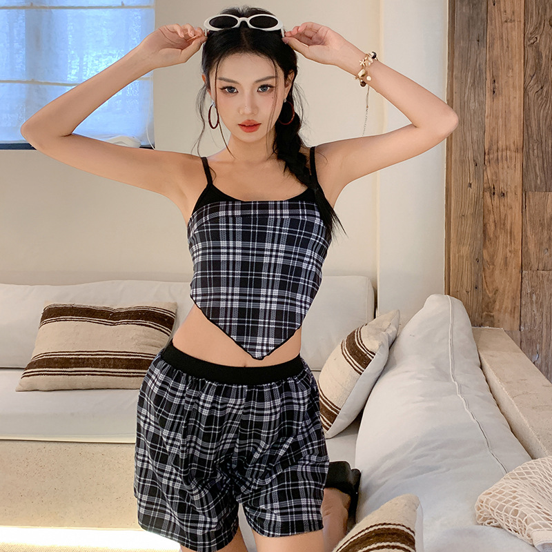 Главная страница > Купальник женский бикини, состоящий из четырех частей, с разрезом для похудения, консервативный, новинка 2025 года, горячая весна, клетчатый, с небольшой грудью, пуш-ап для плавания