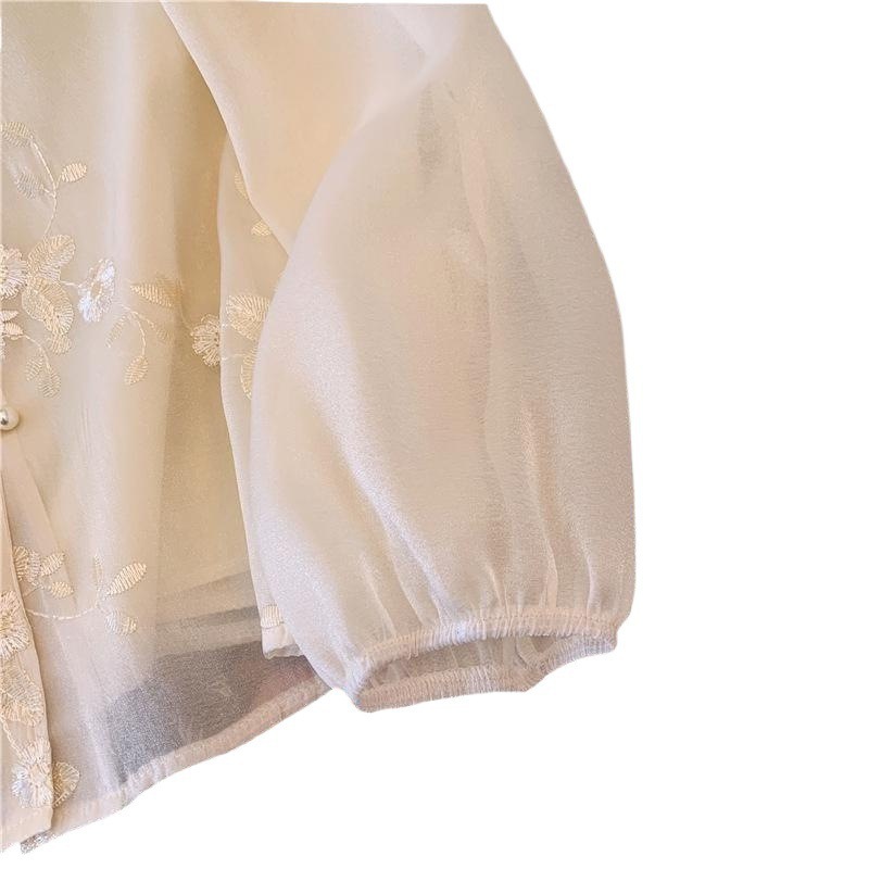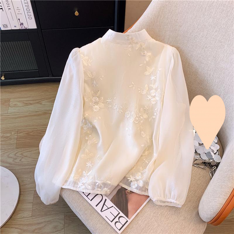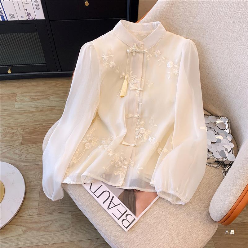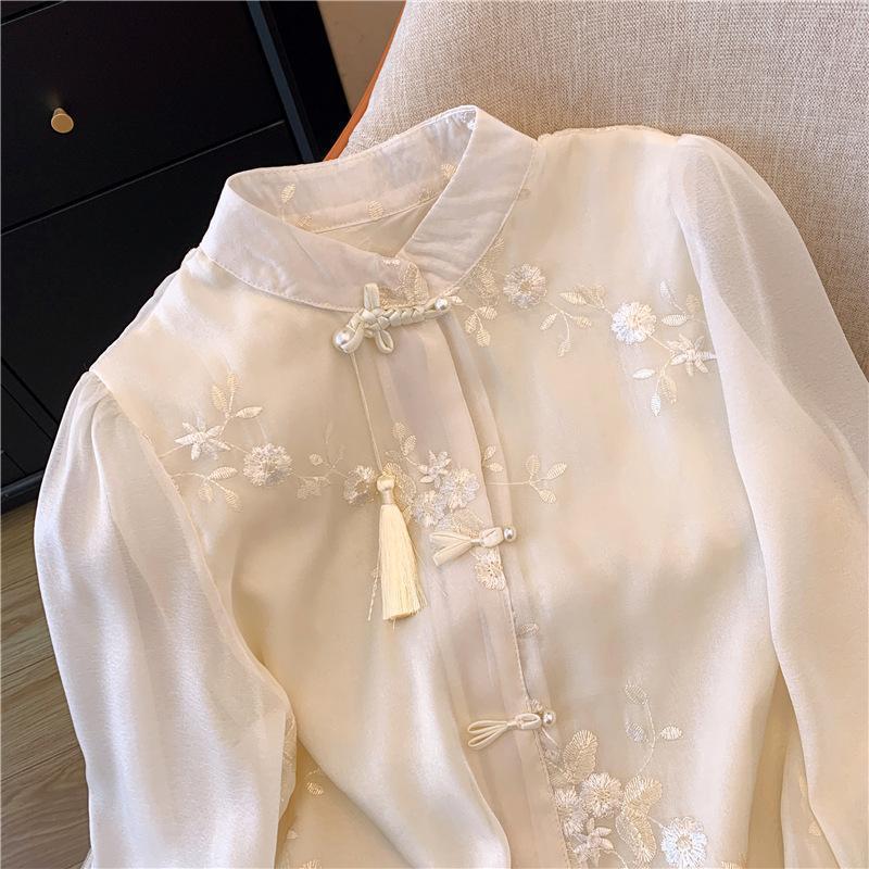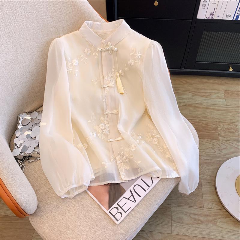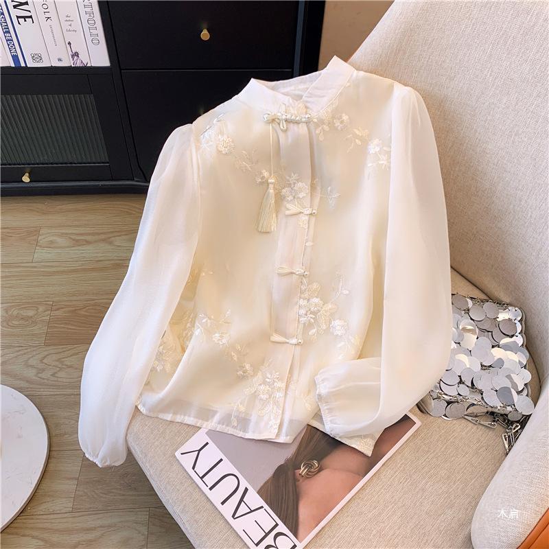 Главная страница > Рубашка с вышивкой 2024 весна новая кисточка с ошейником с пряжкой шифоновая рубашка женская тонкая вышивка топ оптом