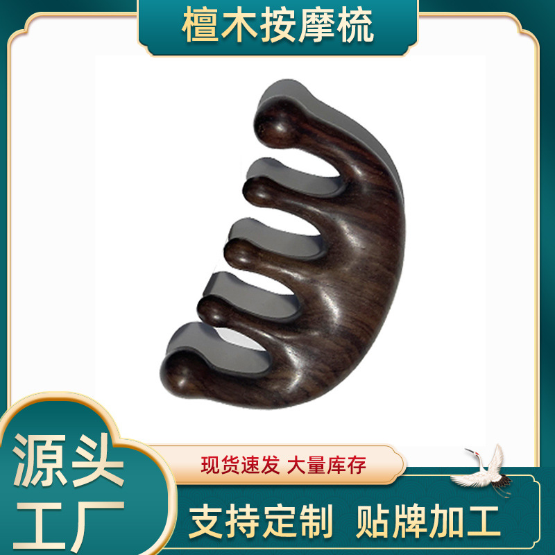 Зеленый сандаловый гребень с пятью зубцами, черный сандаловый гребень, гребень из палисандра, массажный гребень, гребень для кожи головы с крупными зубцами из золотистого шелка, уход за кожей головы