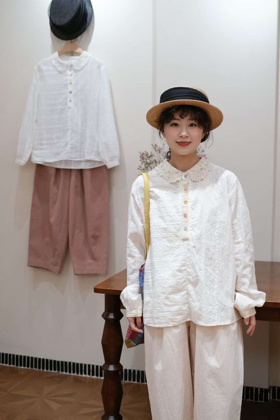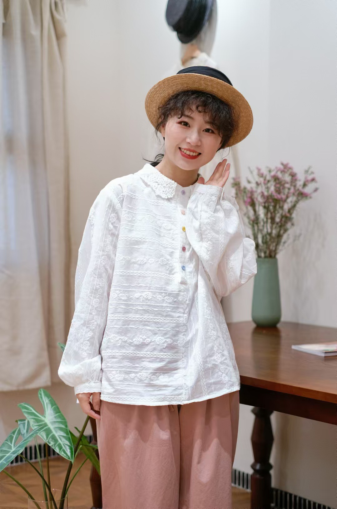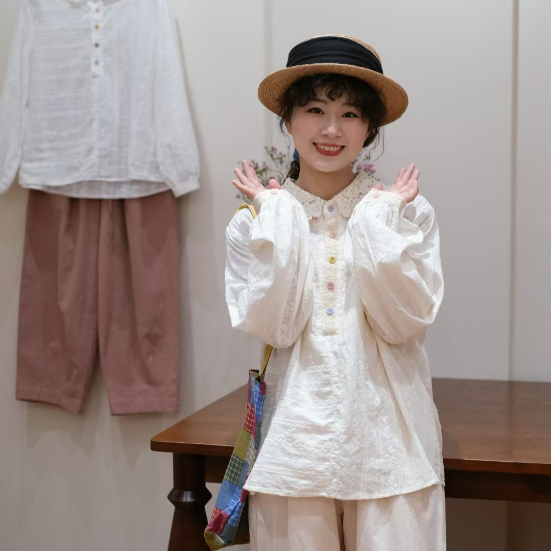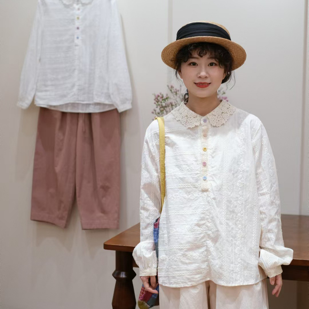 Главная страница > Весенний новый японский сладкий кукольный воротник из хлопчатобумажной цветной пуговицы блузка свободная дикая вышивка минус женская рубашка