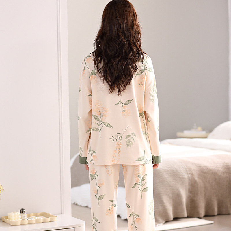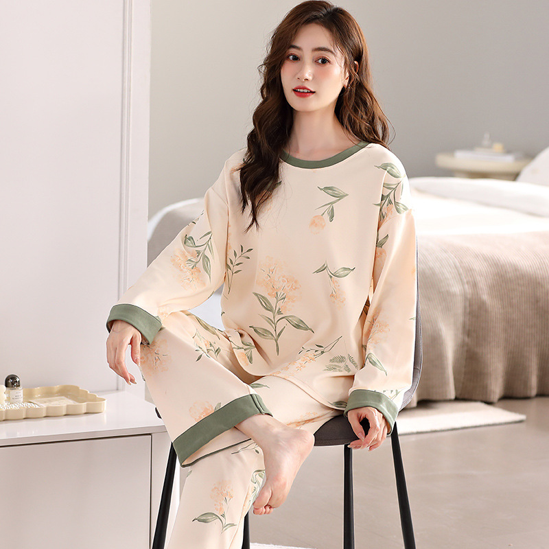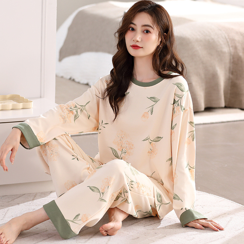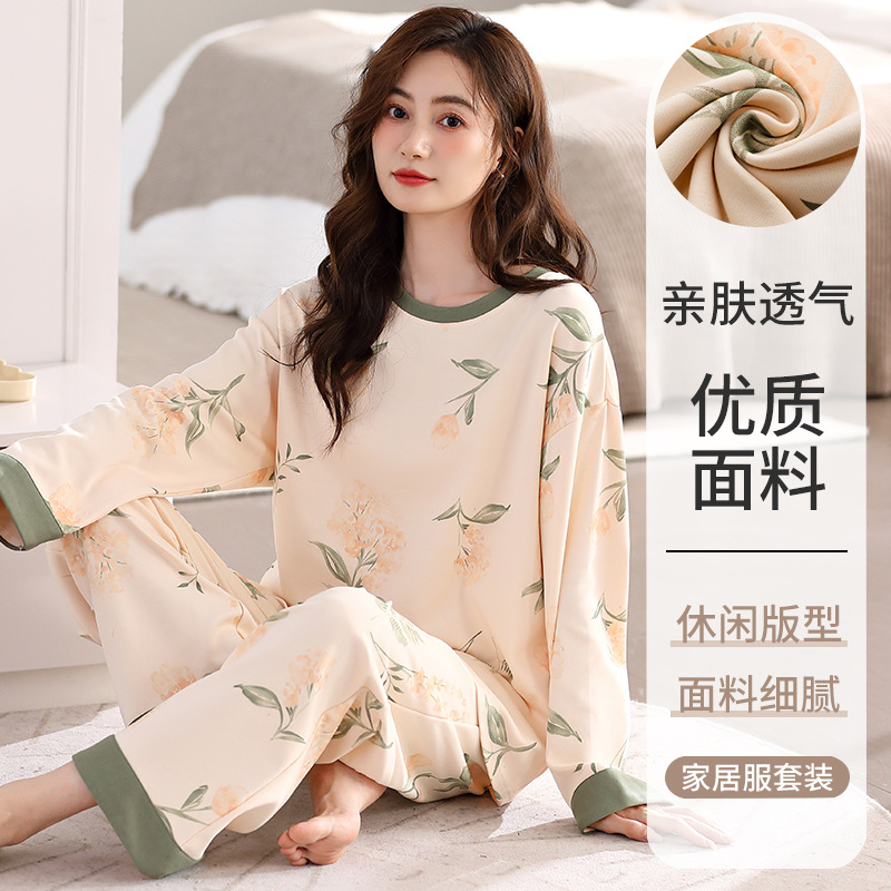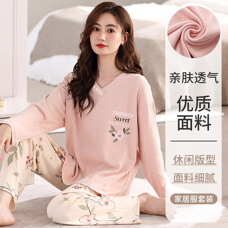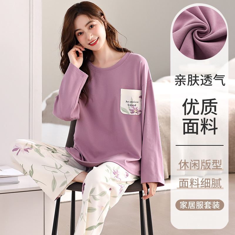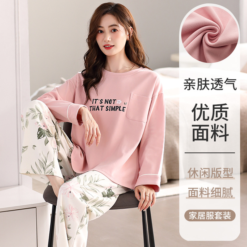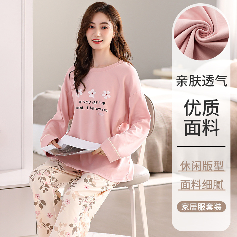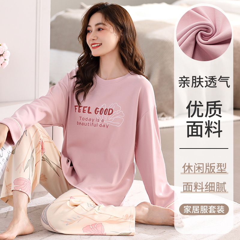 Главная страница > 2023 осень новая Пижама женская весна и осень с длинным рукавом Домашняя одежда костюм верхняя одежда брюки лунный костюм кружево хлопок мультфильм