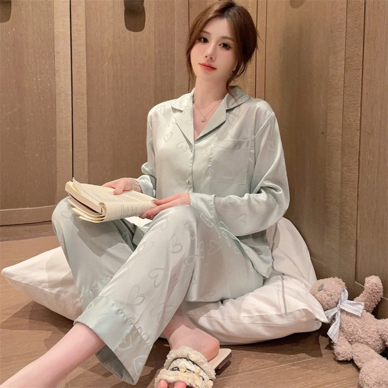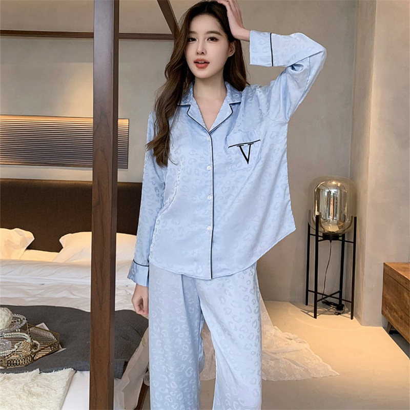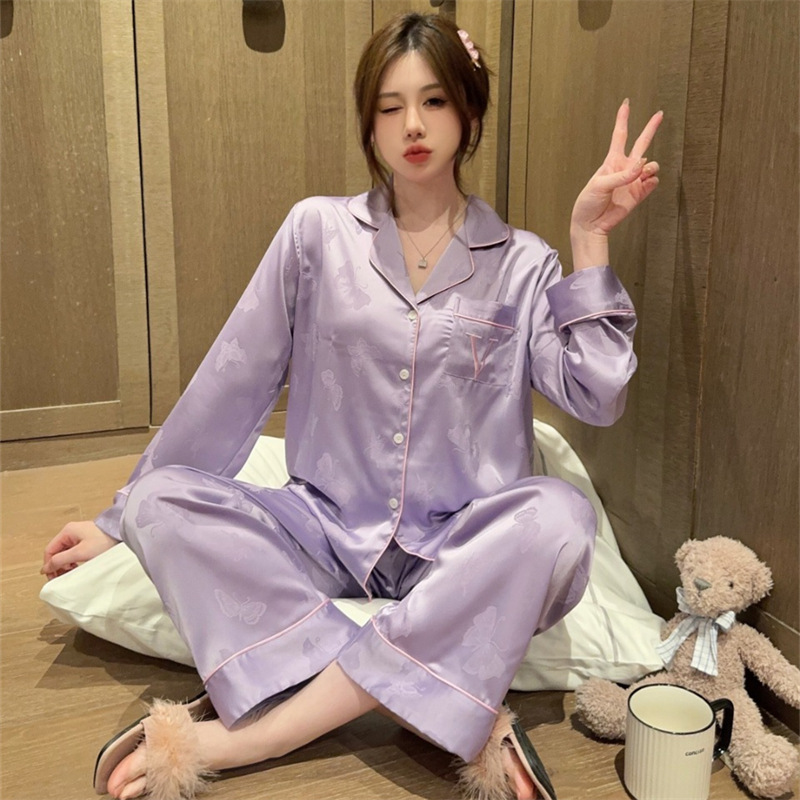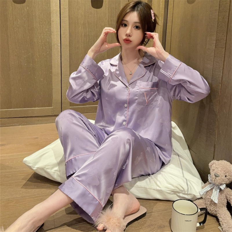 Главная страница > Пижама из ледяного шелка женская весна и осень новые брюки с длинными рукавами, два комплекта модные повседневные кардиганы, домашняя одежда оптом для волос