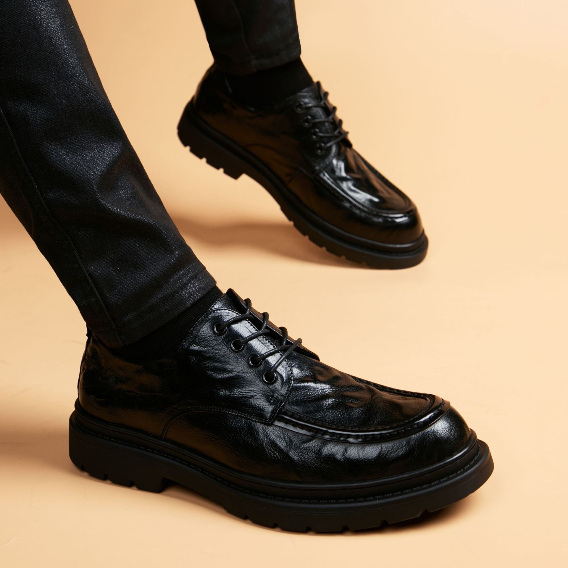 Главная страница > Овчинные мужские туфли из натуральной кожи Британские шнуровки корейские тренды дикие дышащие осенние деловые повседневные мужские кожаные туфли