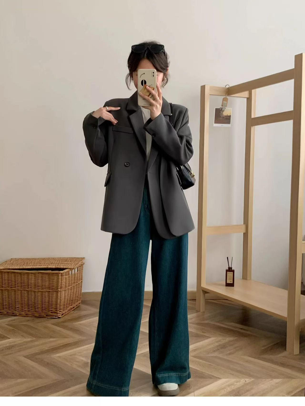 Главная страница > 2025 продвинутый оттенок серый маленький пиджак женский корейский вариант двойной планки дизайн чувство нишевый маленький повседневный темперамент