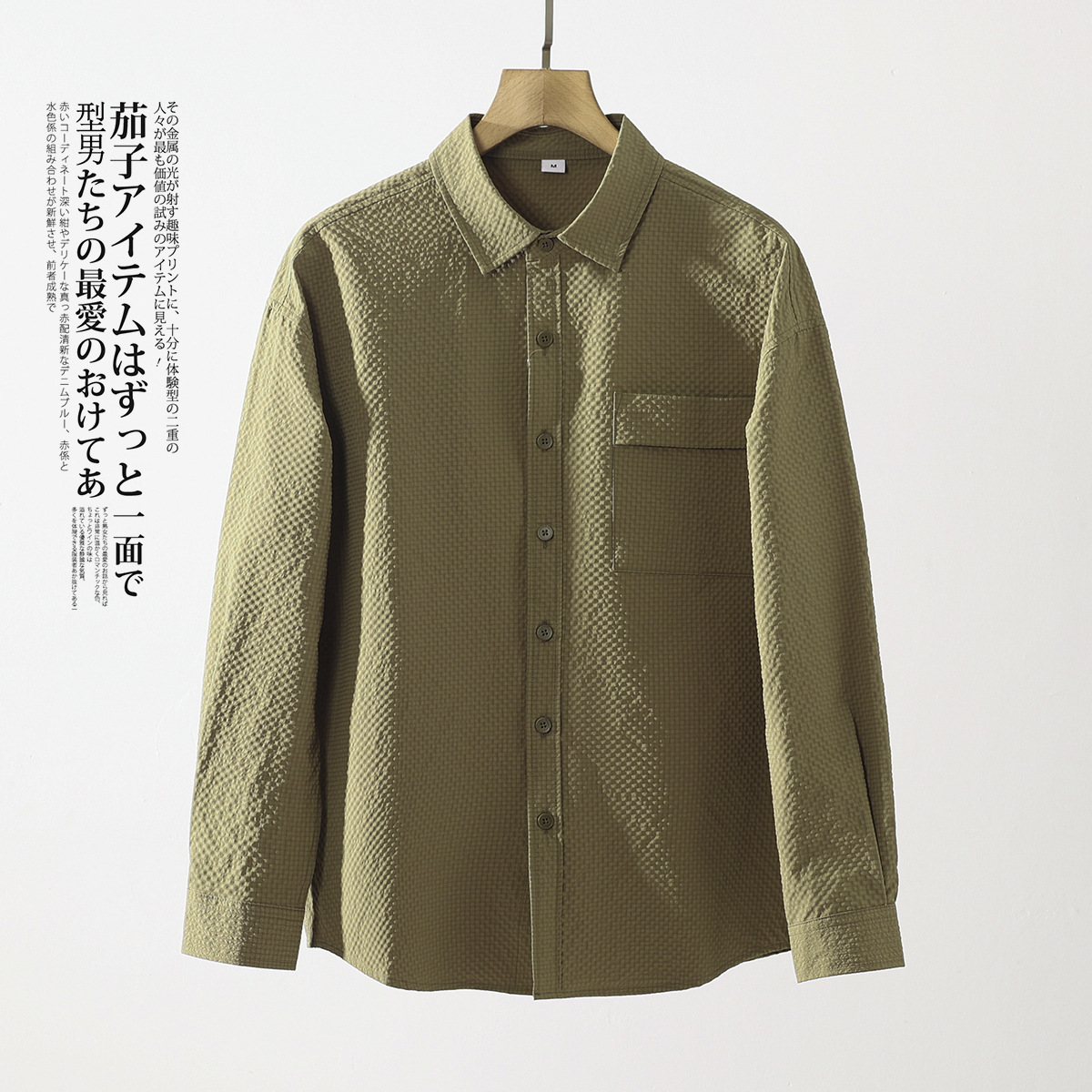 Главная страница > Новый 2024 год! Пузырьковая пряжа Чувство текстуры повседневная рубашка с длинными рукавами мужская удобная дышащая куртка с отворотом осень
