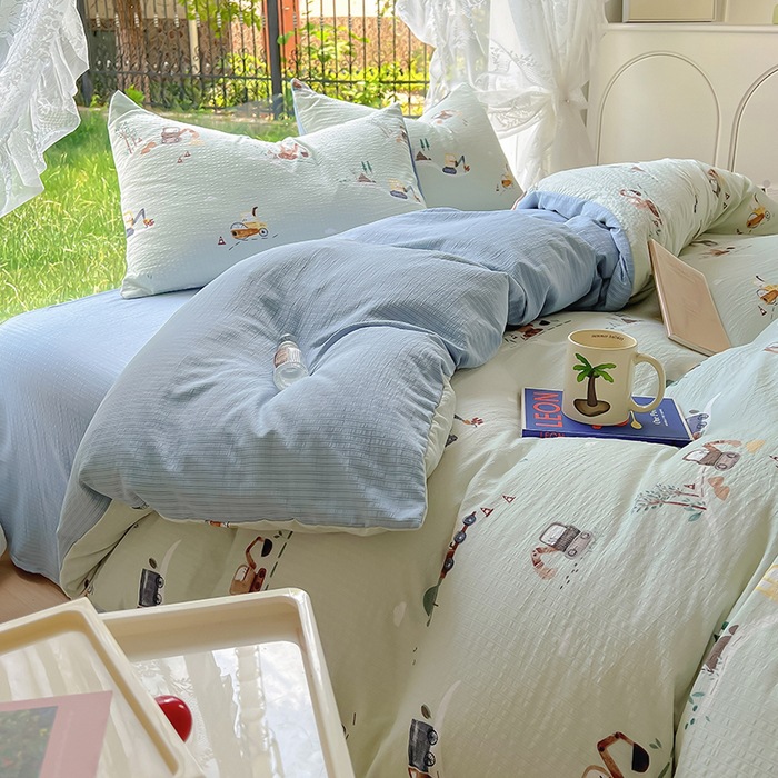 - Комплект из четырех предметов простыни 1,2 м (пододеяльник 150*200, простыня 180*230)