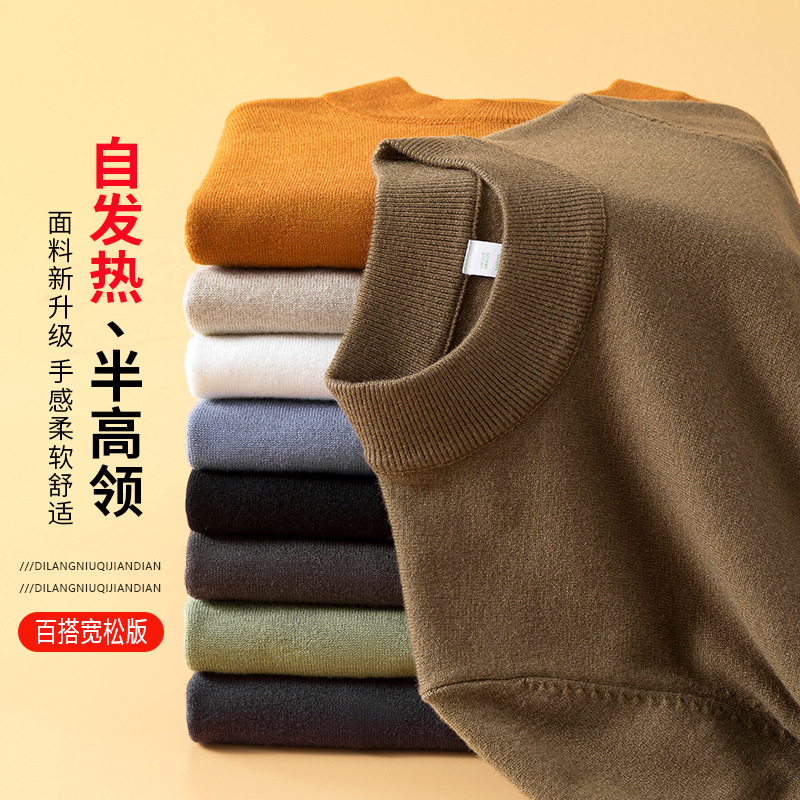 Главная страница > Мужской свитер 2023, новый зимний теплый удобный свободный Универсальный осенне-зимний базовый свитер с длинным рукавом и высоким воротом