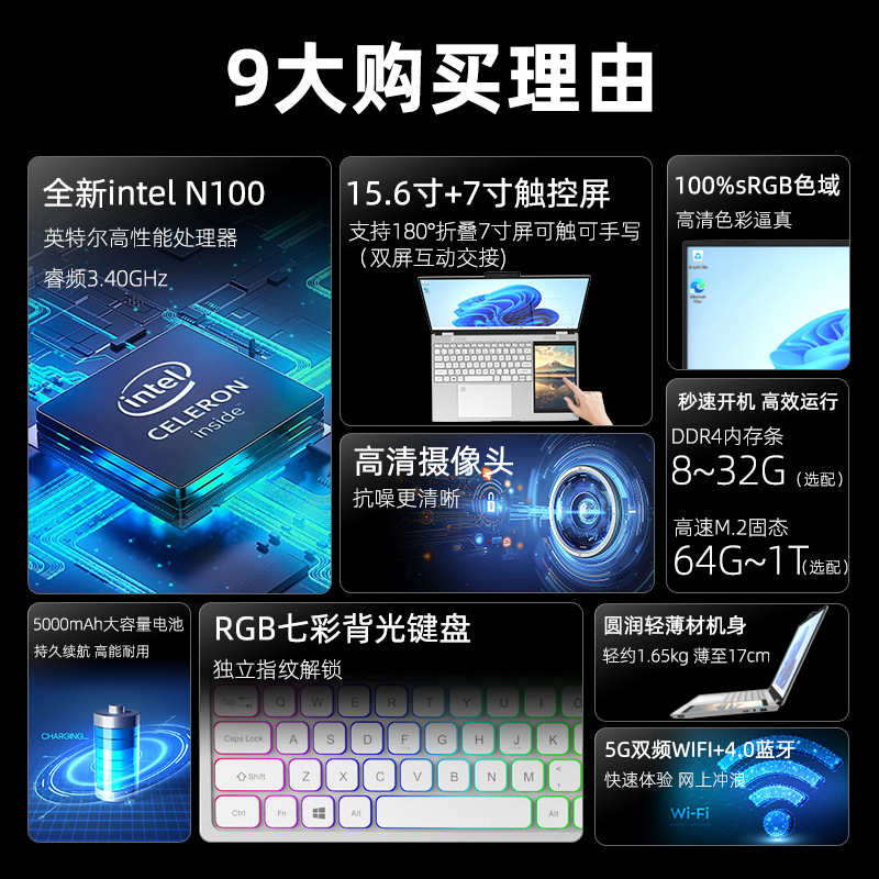 Главная страница > Прямые продажи с фабрики 15.6inch + 7inch сенсорный экран для бизнес-офиса, дизайн ноутбука с двумя экранами, трансграничная оптовая продажа