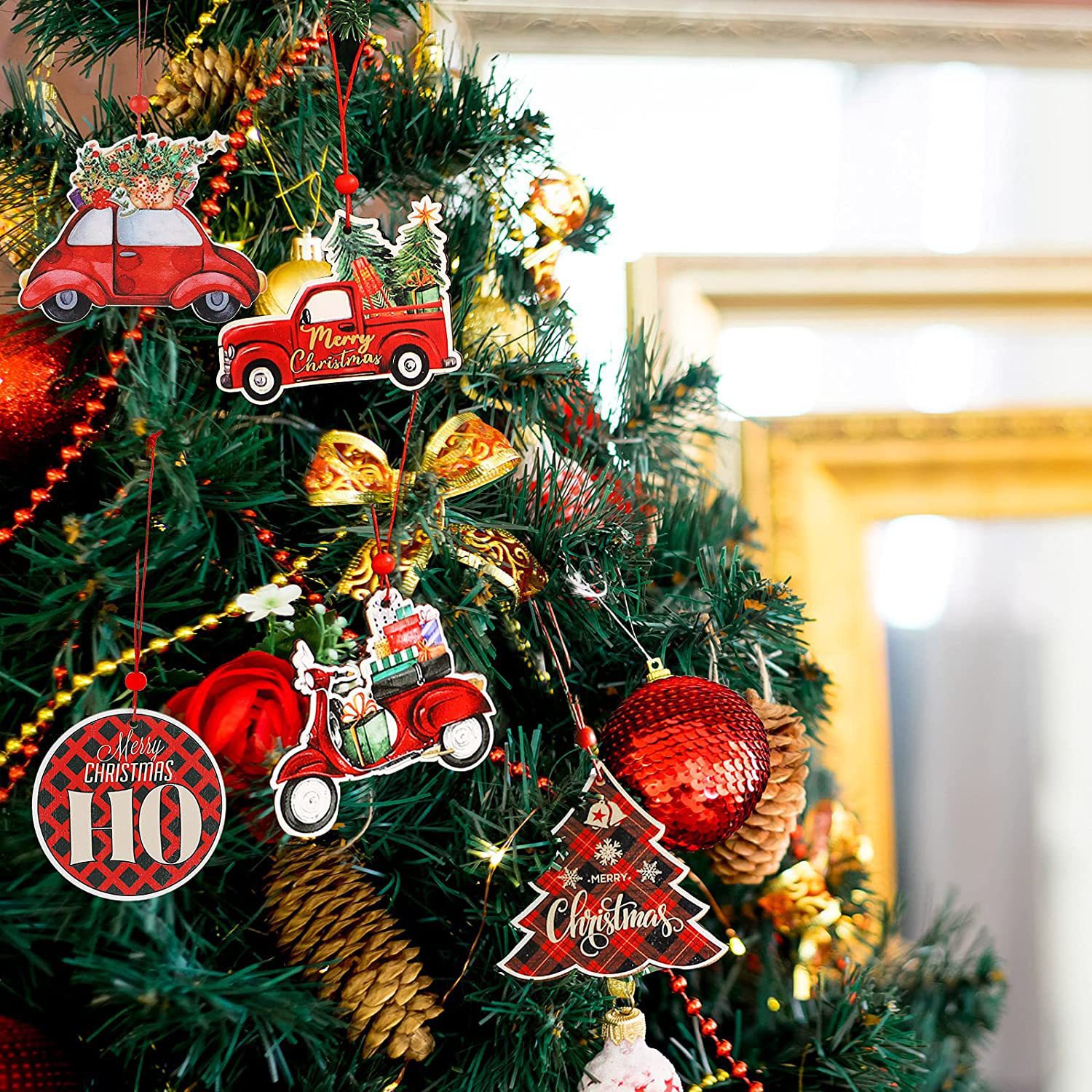Трансграничный Новый 32 предмета красный Рождественский пикап елочные украшения Рождественский деревянный фермерский дом подвесные поделки