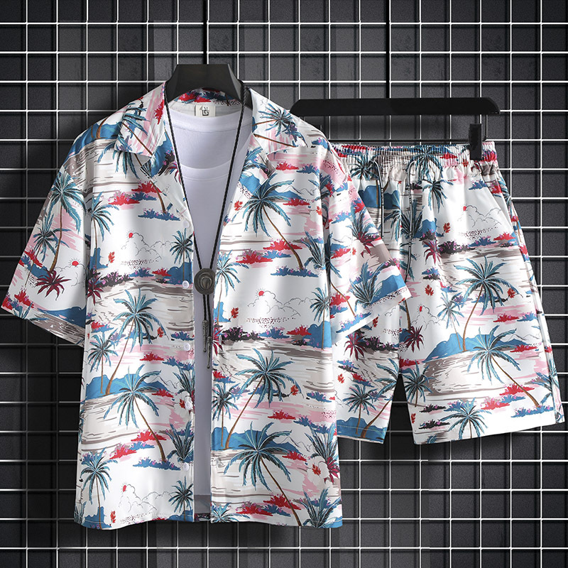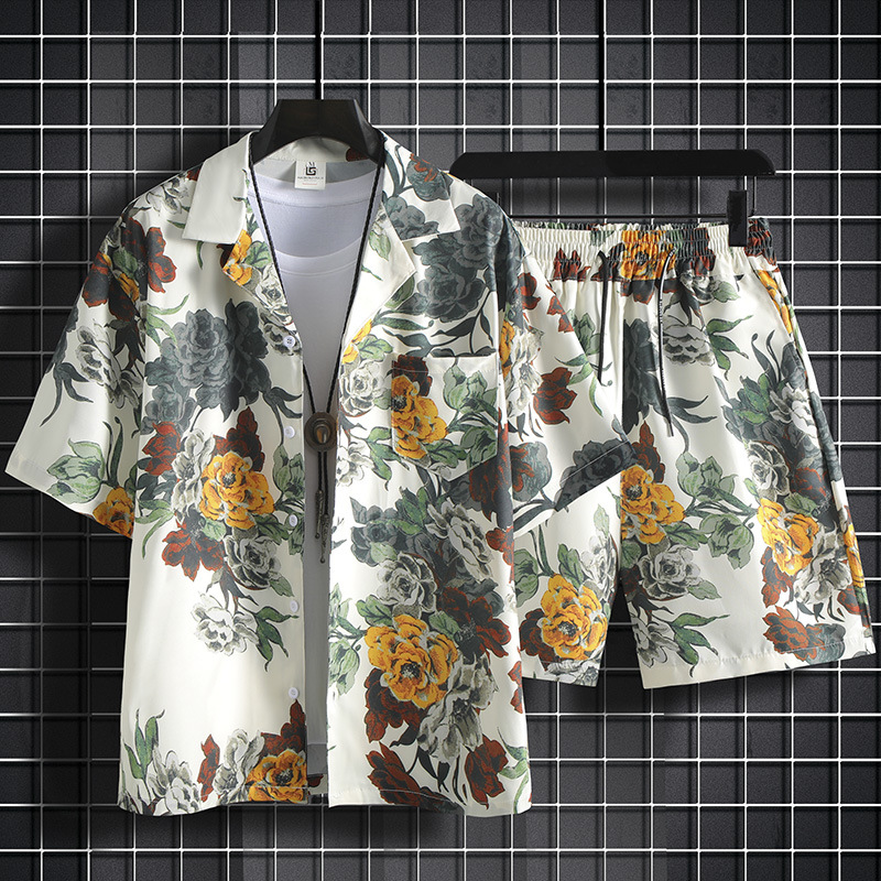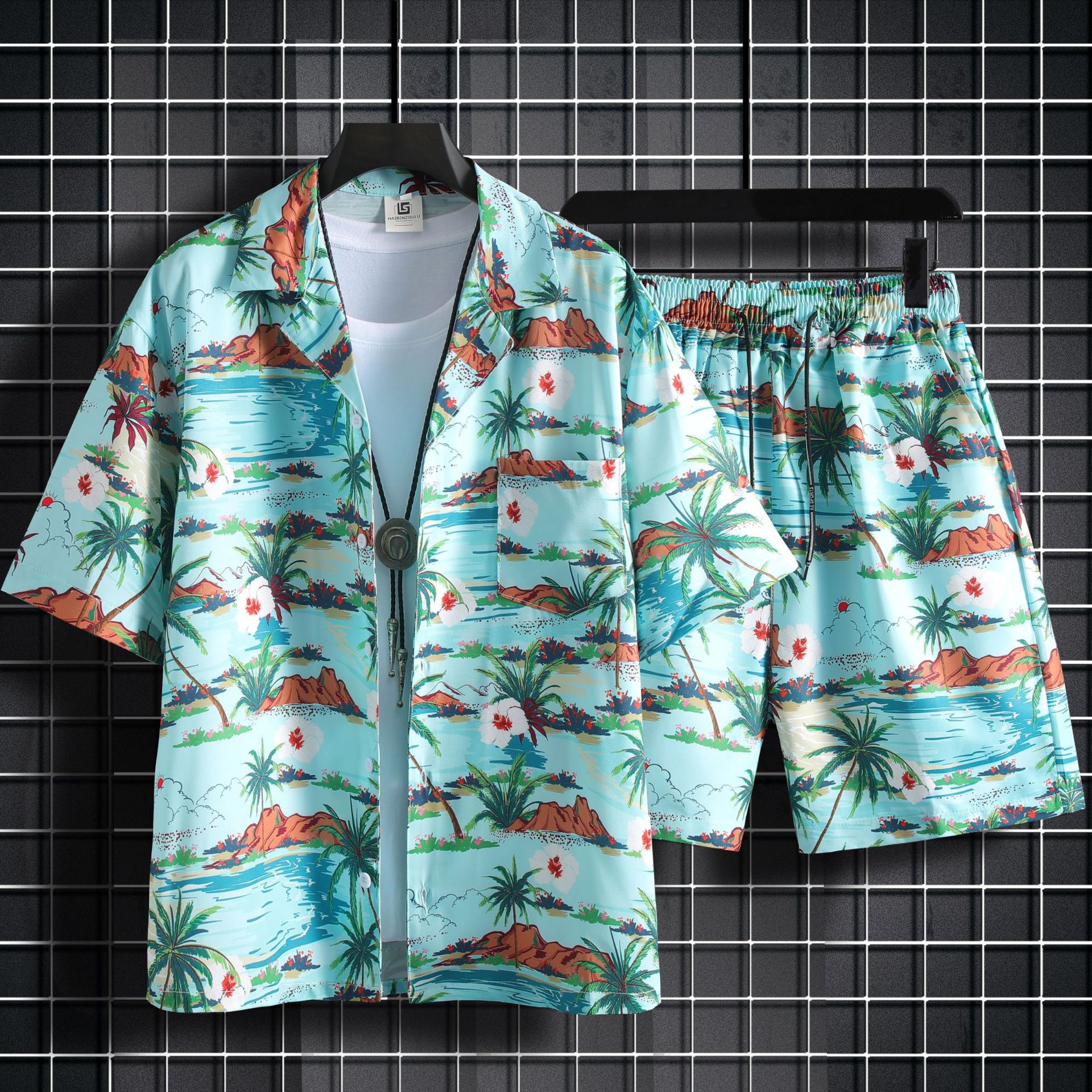 Главная страница > Костюм-рубашка с короткими рукавами и цветочным принтом, Мужская Гавайская пляжная одежда, Таиланд, Санья, свободная повседневная рубашка для пар