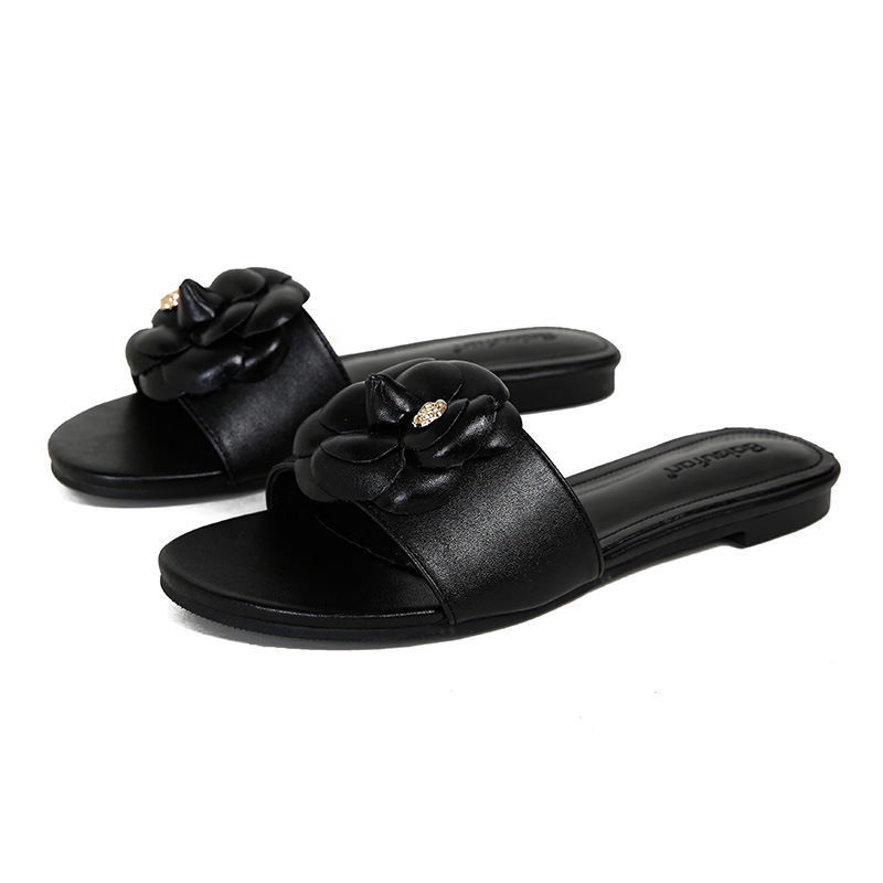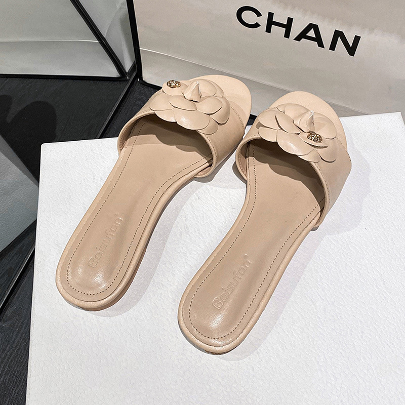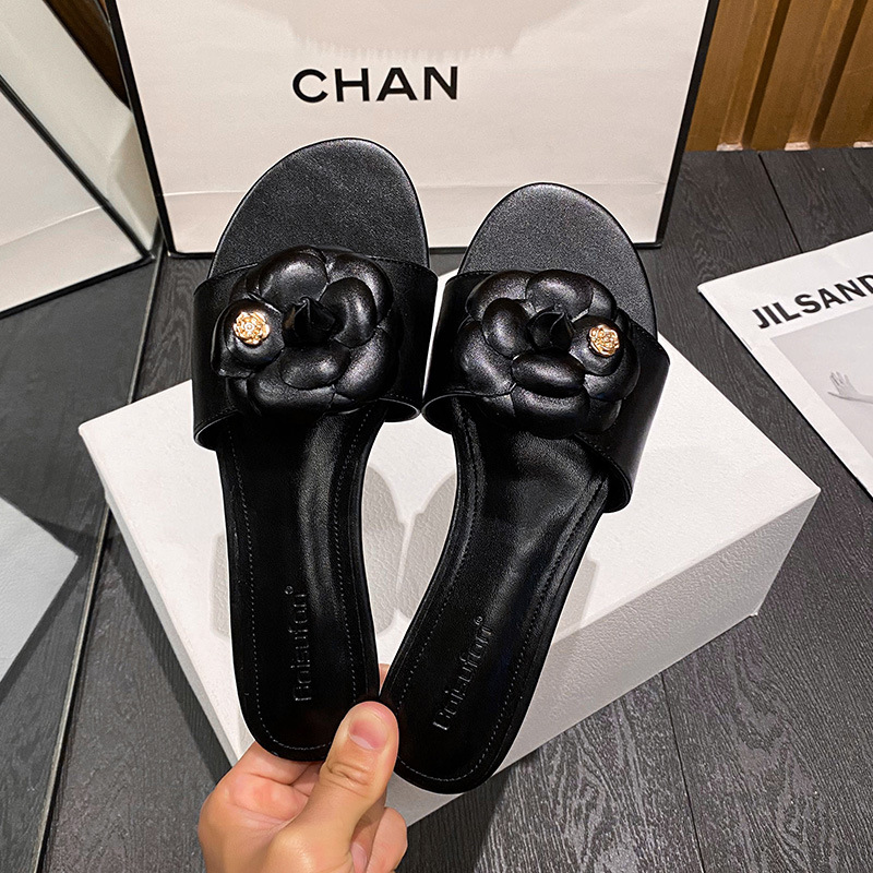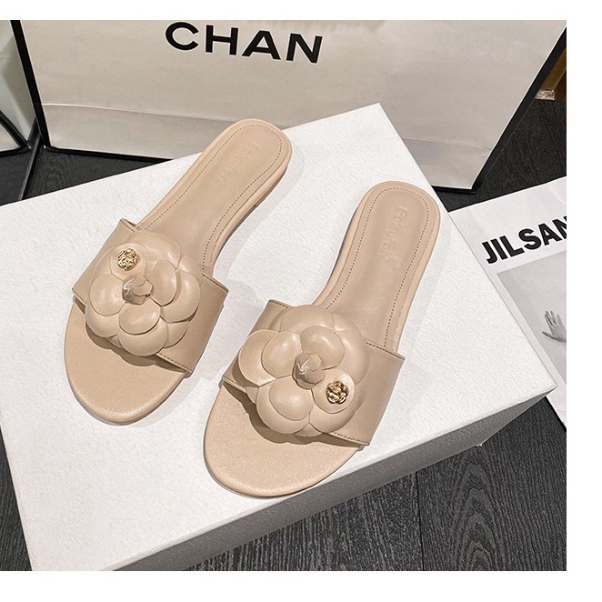 Главная страница > Женские плоские тапочки с камелиями в стиле Chanel, новая модная универсальная пляжная обувь весна/лето 2025 года.