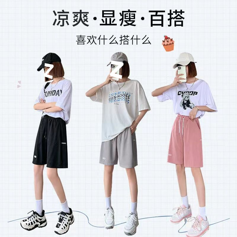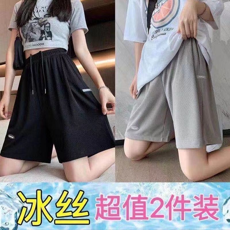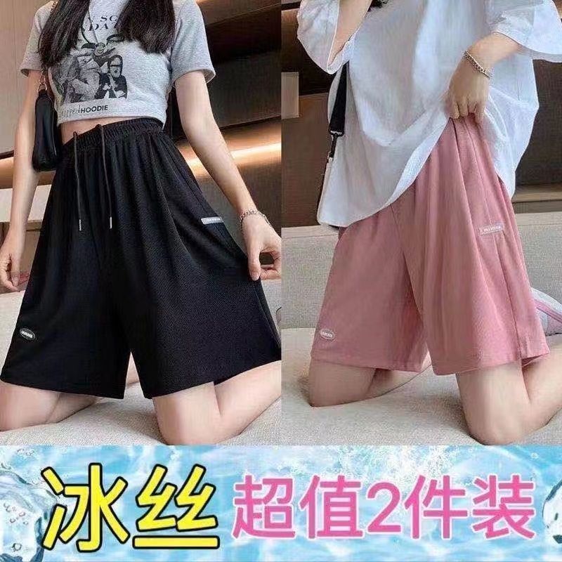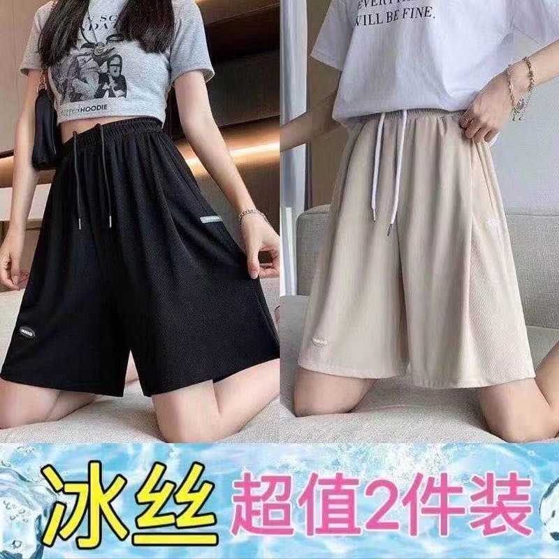 Главная страница > Шорты из ледяного шелка, женские летние тонкие, новинка 2025 года, свободные прямые повседневные широкие спортивные брюки с высокой талией