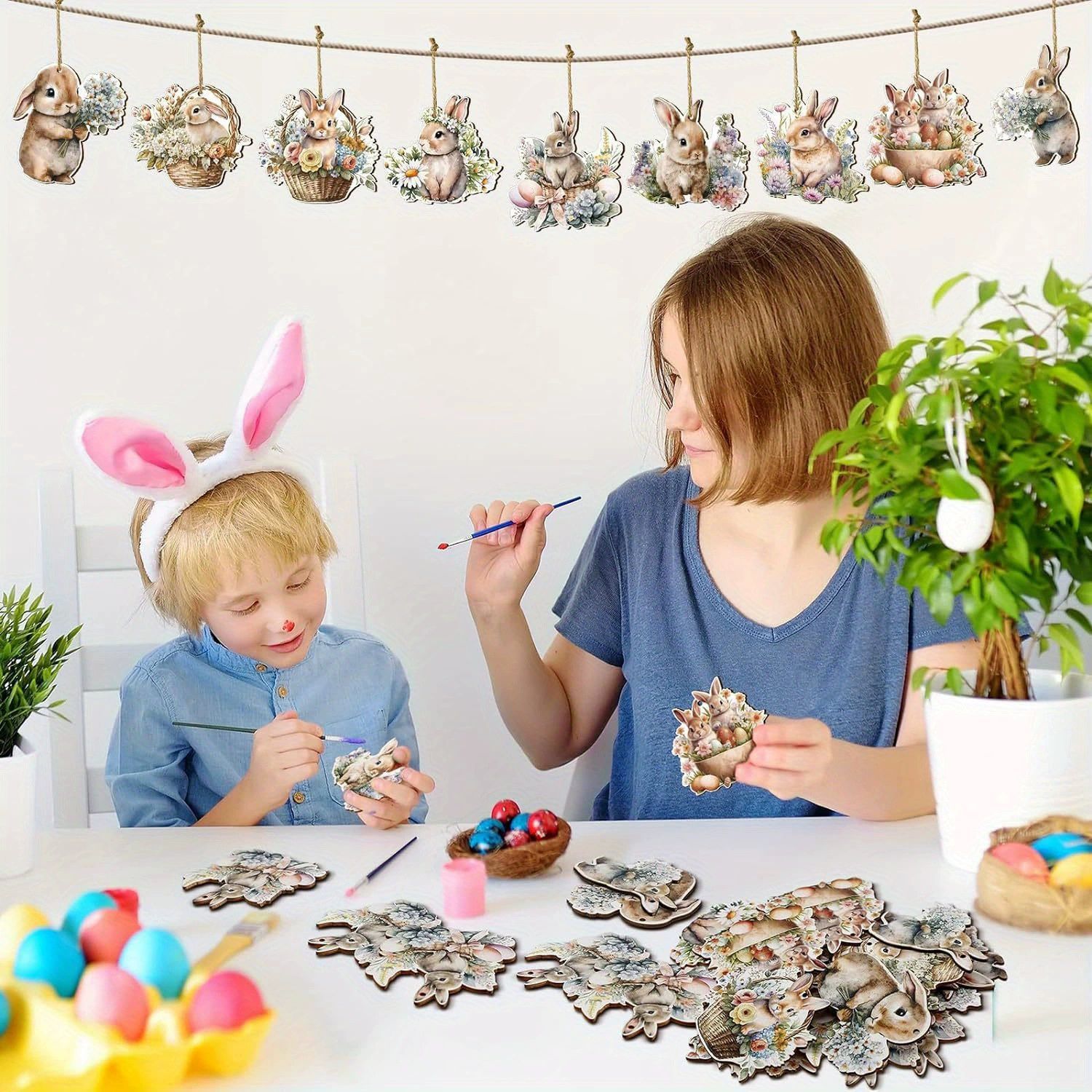 Главная страница > Пасхальный кролик украшения Пасхальный деревянный щепа декоративное дерево листинг с веревкой для вечеринки Семейный фермерский дом пастырский