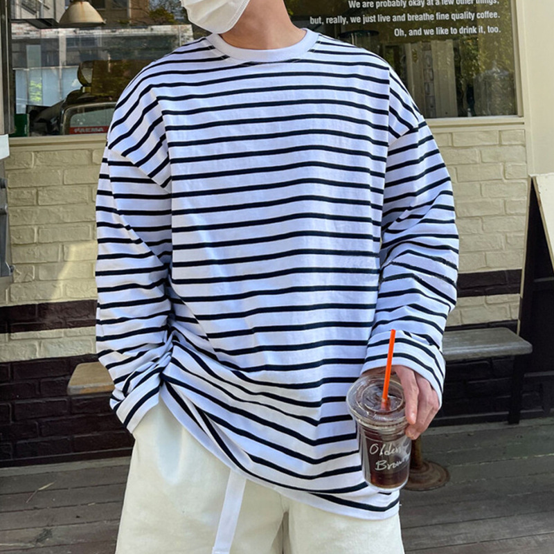 Главная страница > Мальчики с тяжелыми полосками футболки с длинными рукавами весной новые повседневные свободные топы