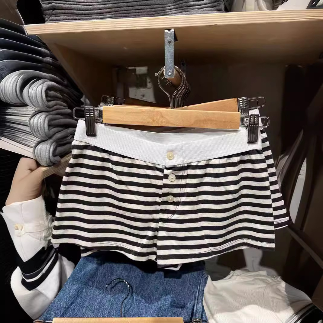 BM ветер высокая талия эластичные шорты с тремя пуговицами полосатые шорты женские bm сладкие пряные эластичные четырехугольные спортивные шорты