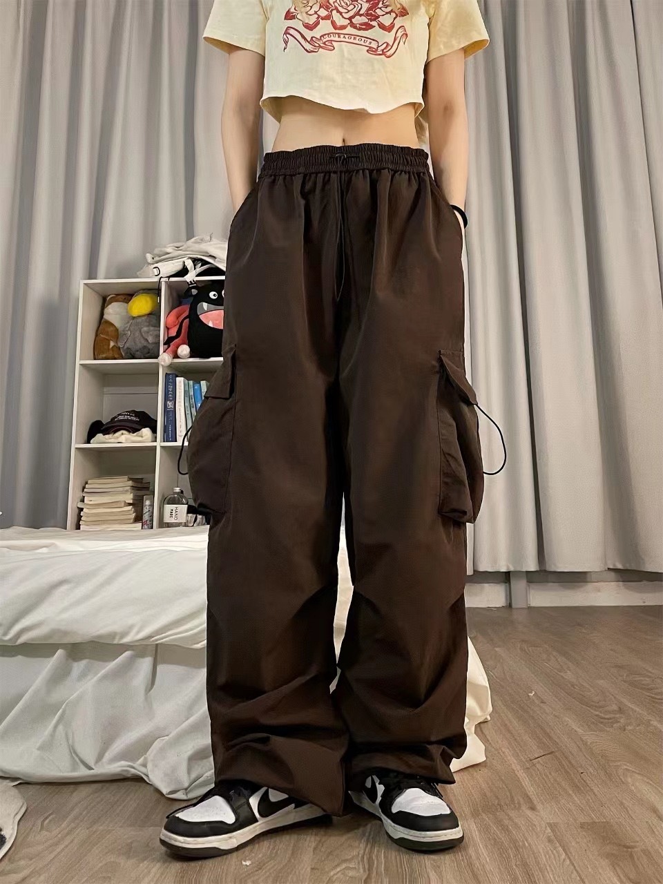 Главная страница > Женские комбинезоны Design Sense High Street 2024 Новые свободные прямые широкие штанины с большими карманами в стиле ретро, модные брюки с завязками на щиколотке