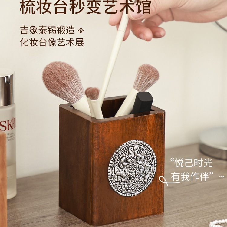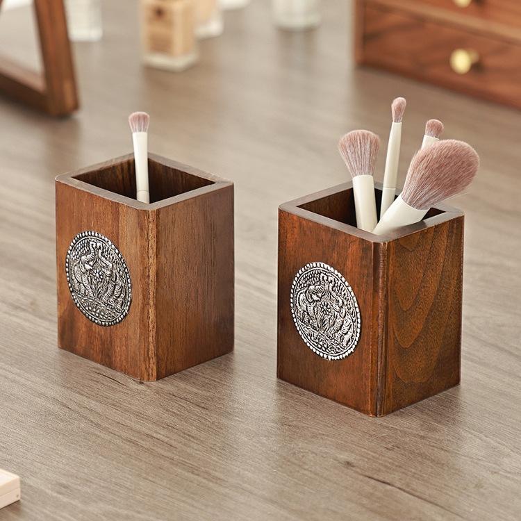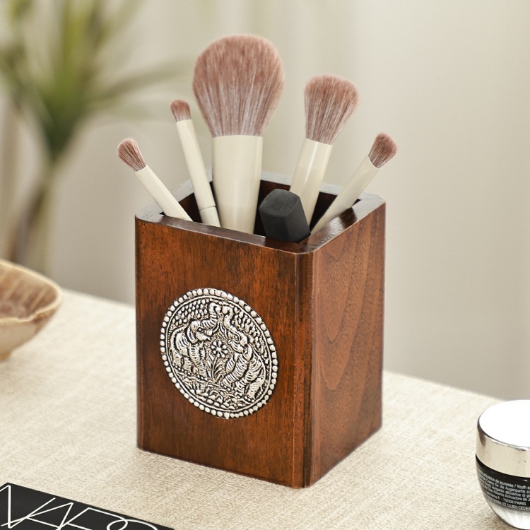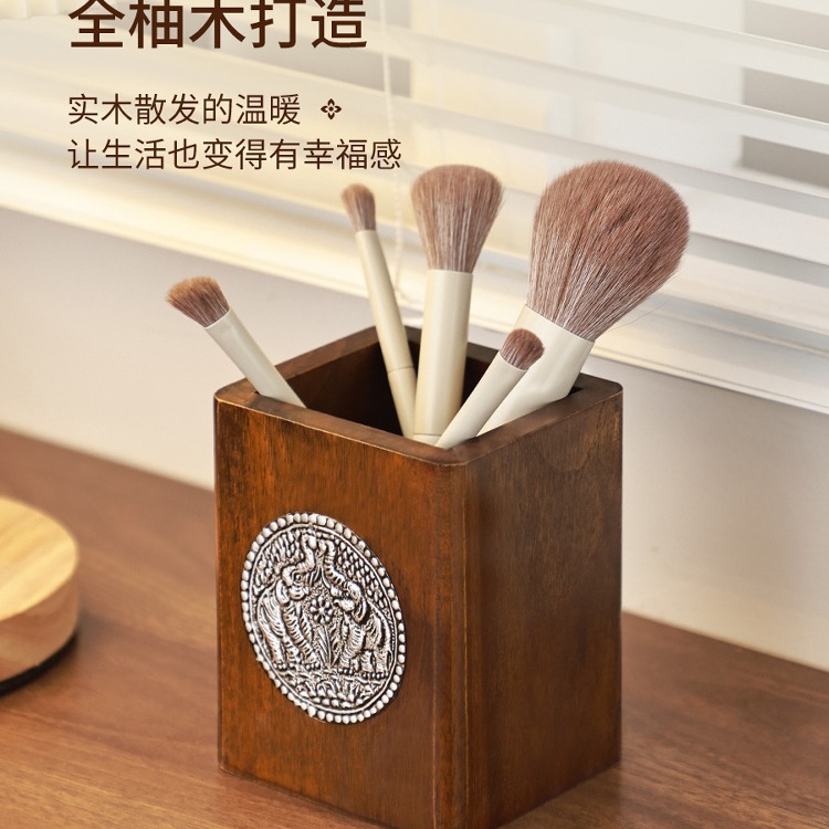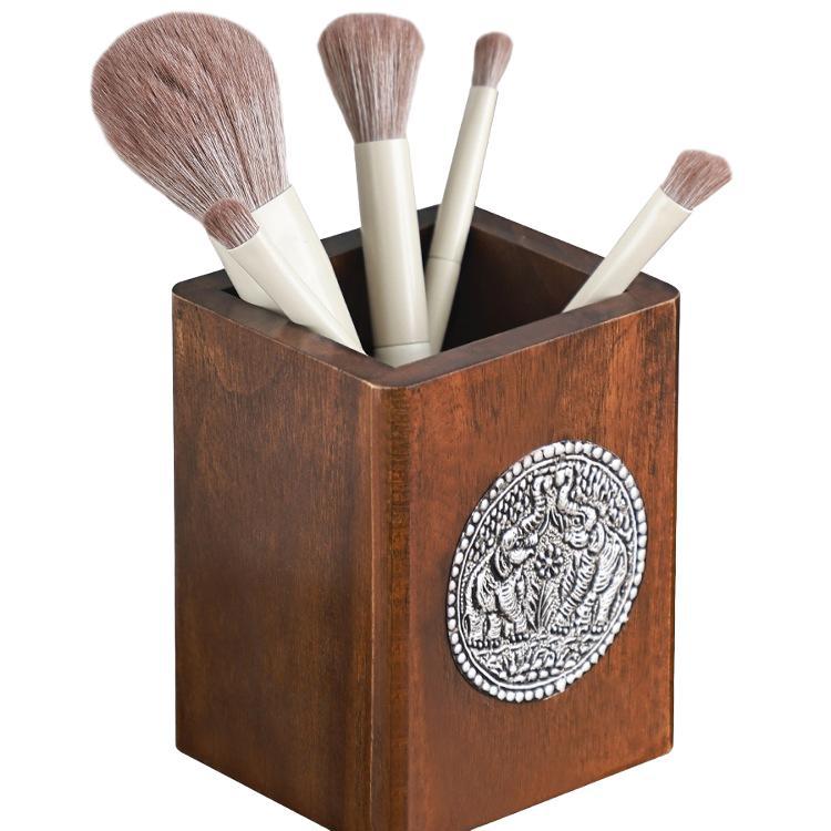 Главная страница > Креативный держатель для ручек из цельного дерева в стиле ретро, деревянный ящик для хранения кистей для макияжа в китайском стиле, настольный держатель для ручек, ящик для хранения, украшения