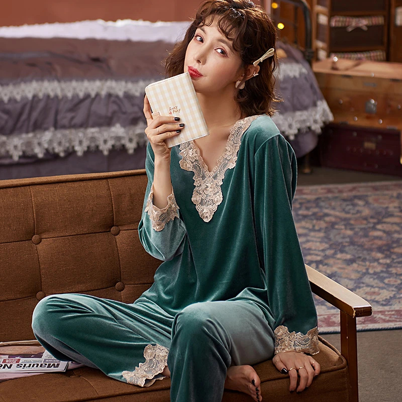 Главная страница > Теплые бархатные пижамы Da Vinci Code, осенне-зимний стиль, корейская версия, можно носить на улице, домашняя одежда, кружевной женский комплект из двух предметов