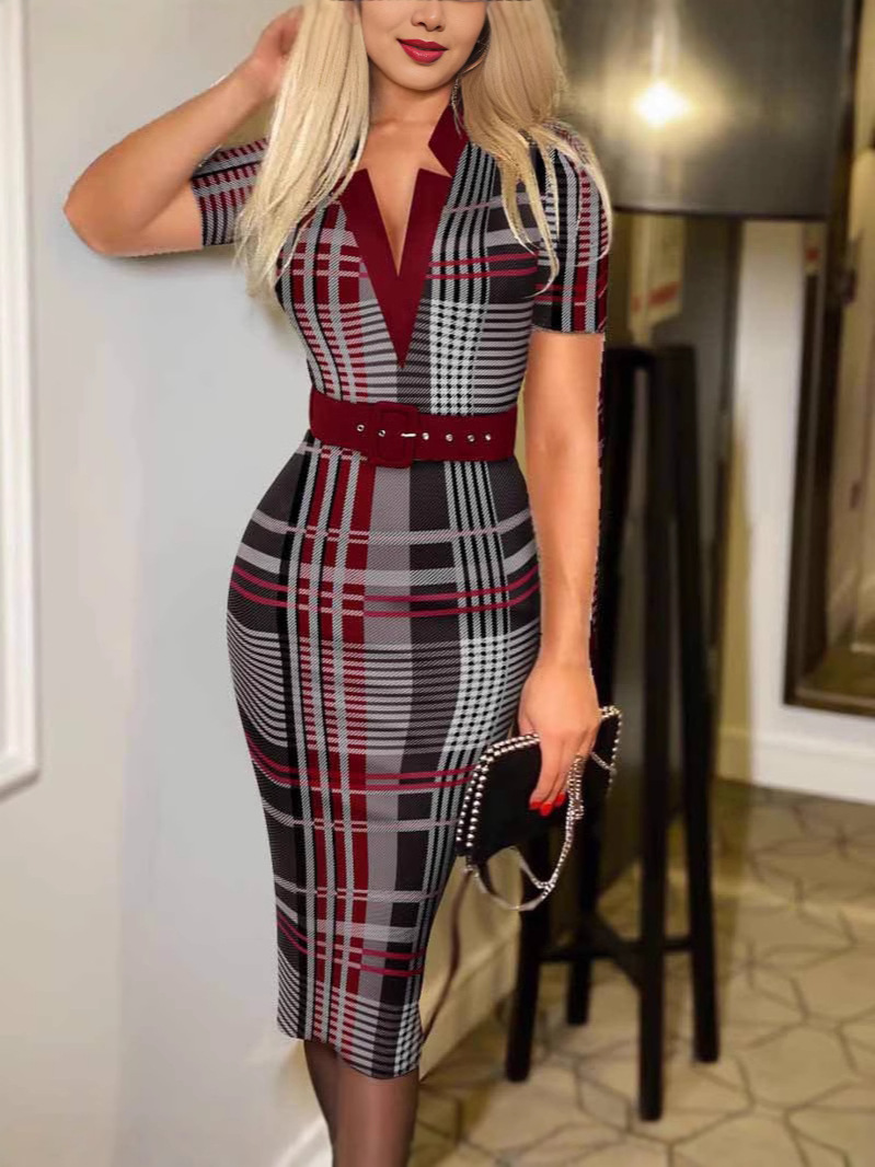 2025 Европейская и Американская внешняя торговля Трансграничная Amazon Новая мода в клетку V-образный вырез бедра с длинными рукавами Сексуальное платье Женское