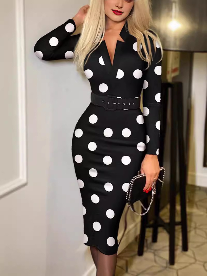 Длинные рукава в горошек черного цвета (в комплекте с поясом).