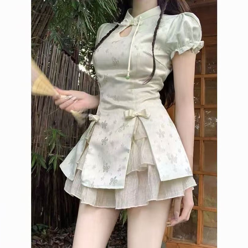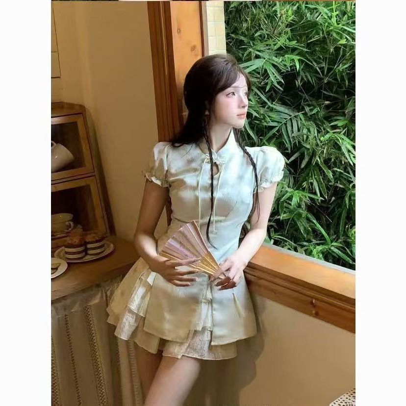 Главная страница > Новый китайский стиль ретро маленький человек национальный стиль дизайн улучшенный cheongsam платье с пуговицами рукава юбка из двух частей
