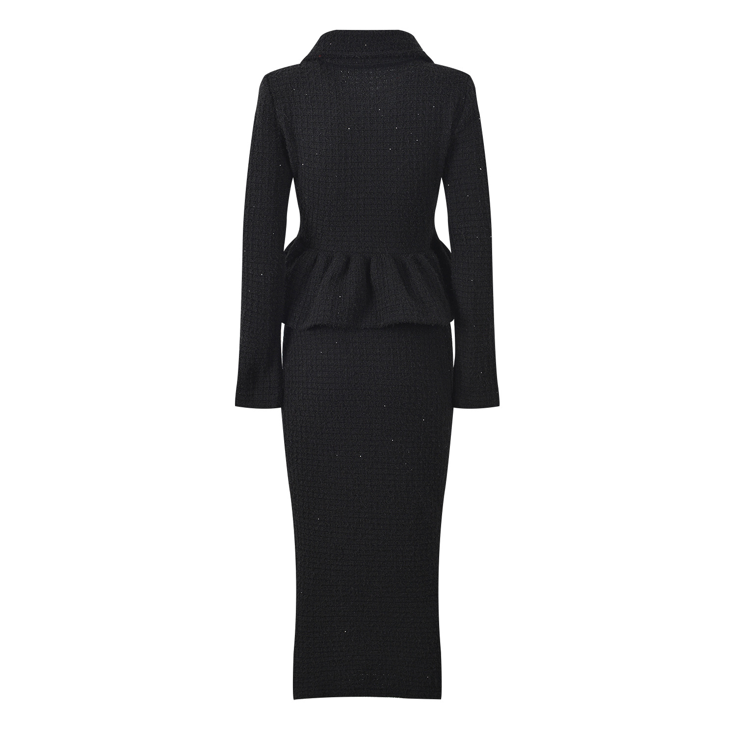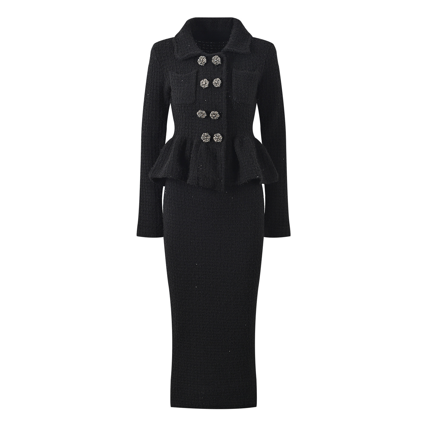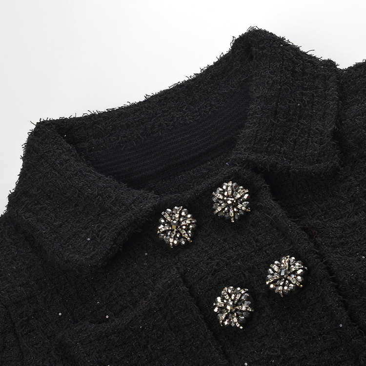 Главная страница > Новое платье осень-зима 2025 в французском стиле, для женщин с изысканным вкусом, двубортное, с отложным воротником, черное, с лоскутным узором, приталенное
