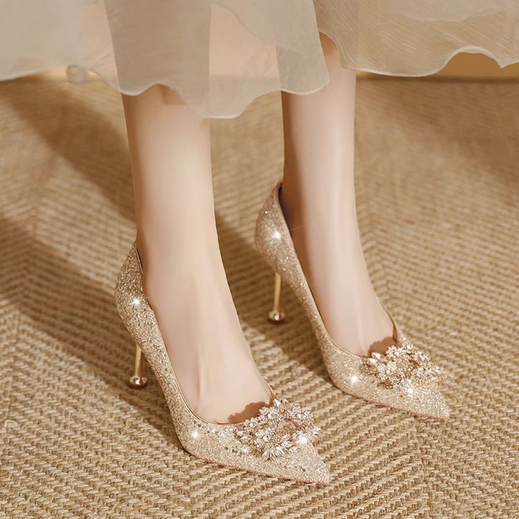 Главная страница > Свадебные туфли женщины 2024 новый темперамент высокого уровня чувство французский каблук китайский стиль свадебные туфли красные каблуки