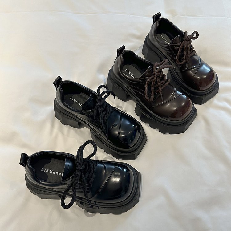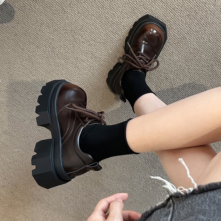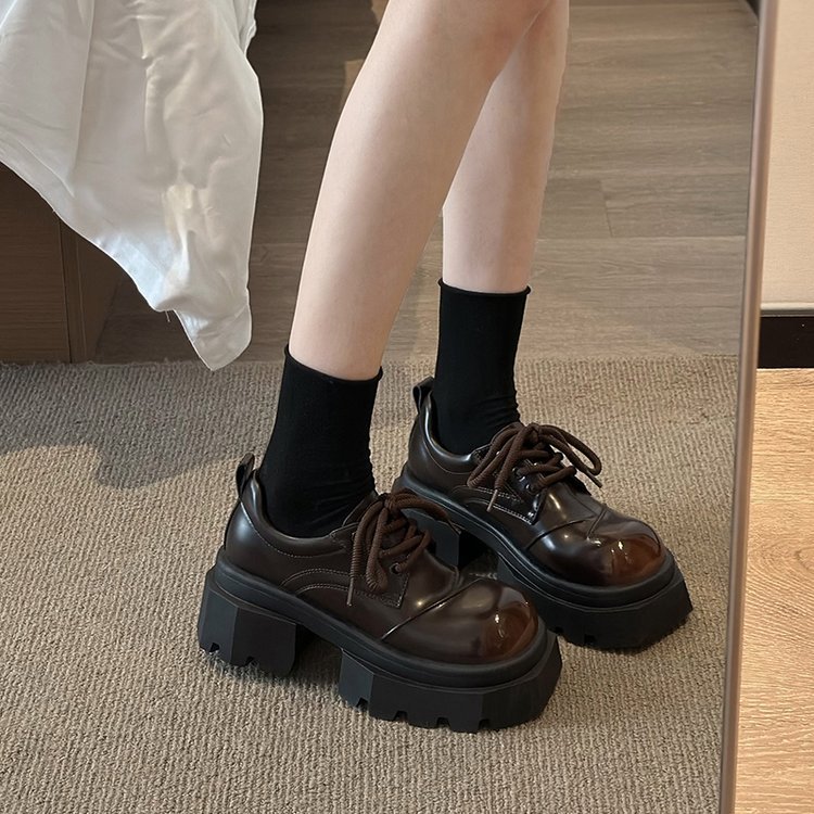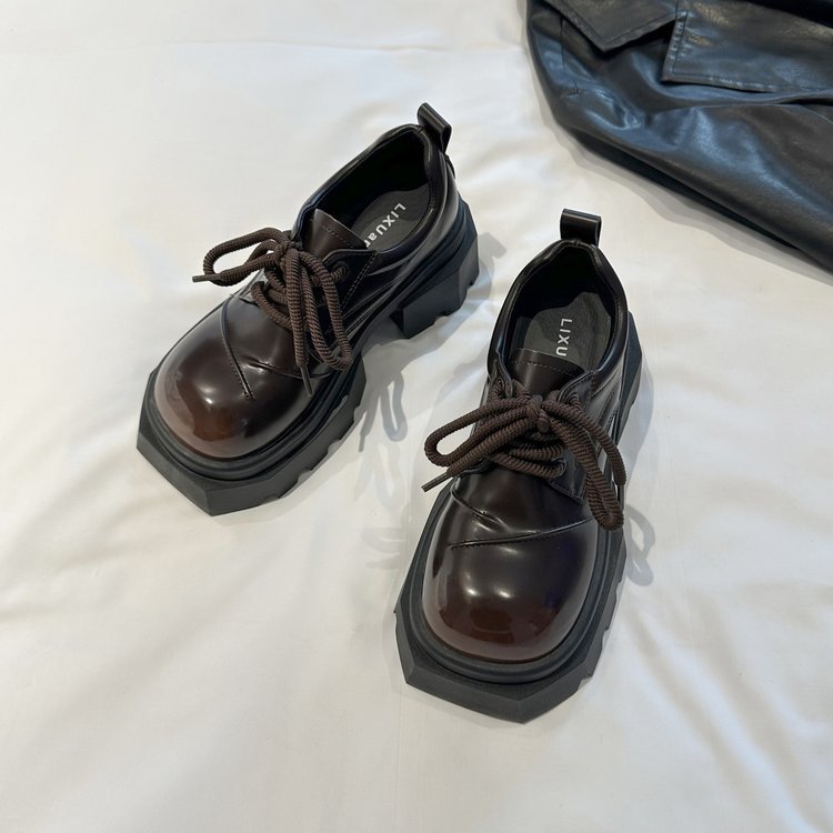 Главная страница > Толстый подошв коричневые кожаные туфли Lefu женская весна и осень 2025 новый английский стиль ретро толстые каблуки увеличены
