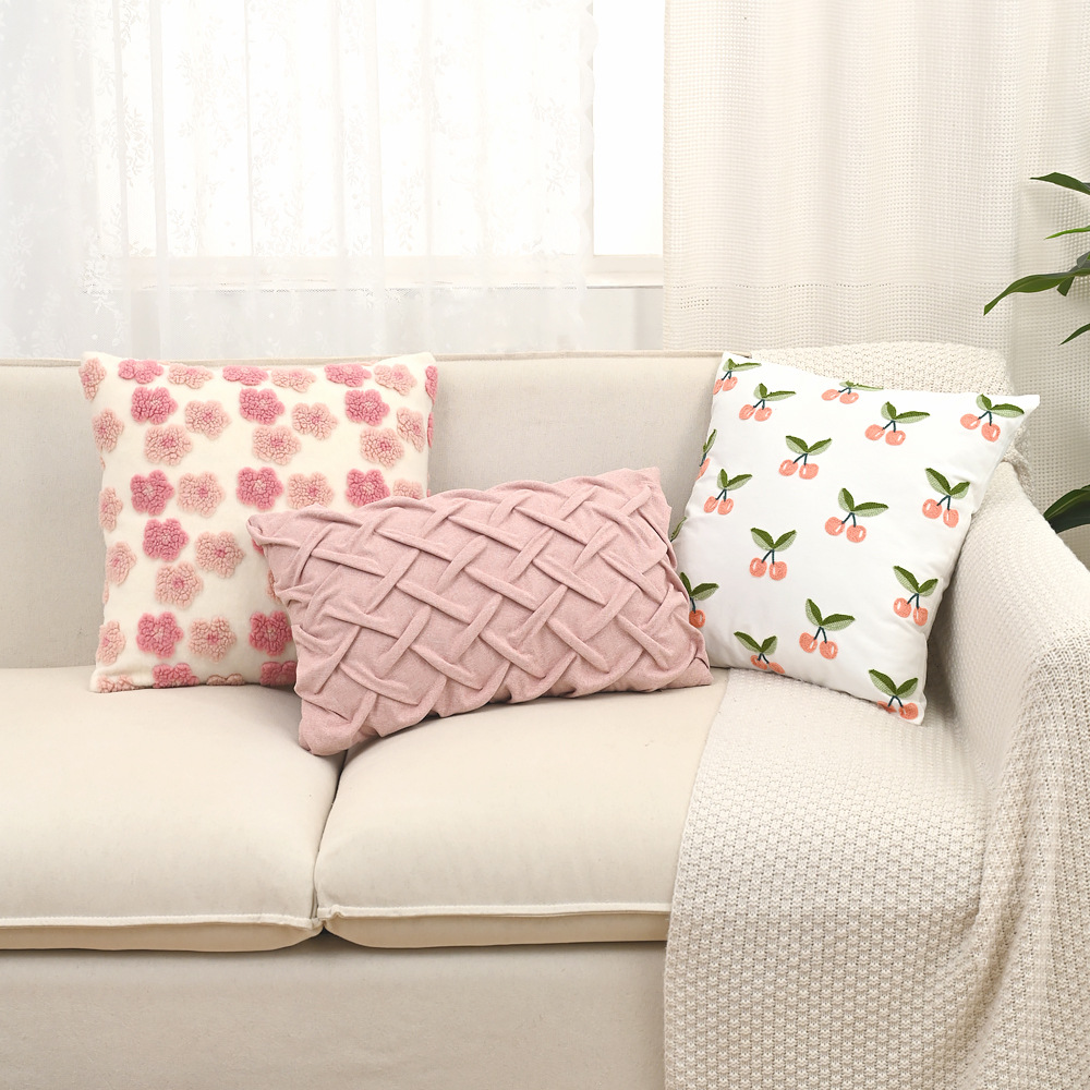 Главная страница > Трансграничные ins вышитая вишня плюшевые цветы ремесло розовая наволочка для дома диван спальня для украшения гостиной