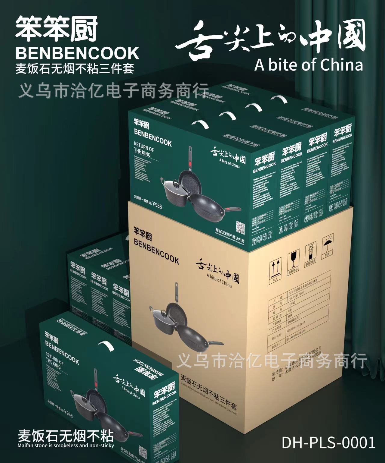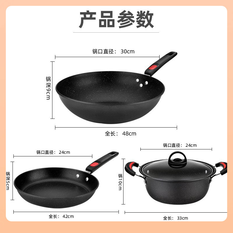 ✅ Набор посуды из трех предметов из камня Майфан: антипригарная сковорода, вок, кастрюля для супа — подарочный набор для трансграничной торговли.