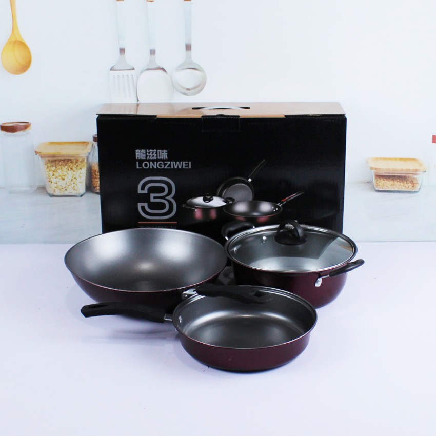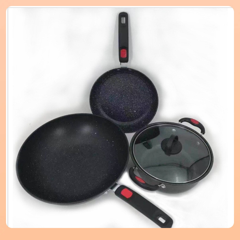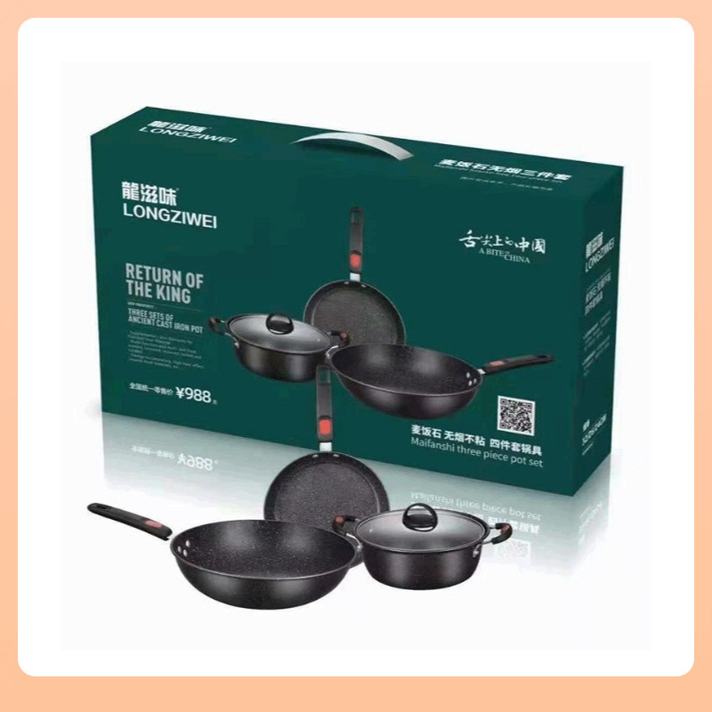 Главная страница > ✅ Набор посуды из трех предметов из камня Майфан: антипригарная сковорода, вок, кастрюля для супа — подарочный набор для трансграничной торговли.