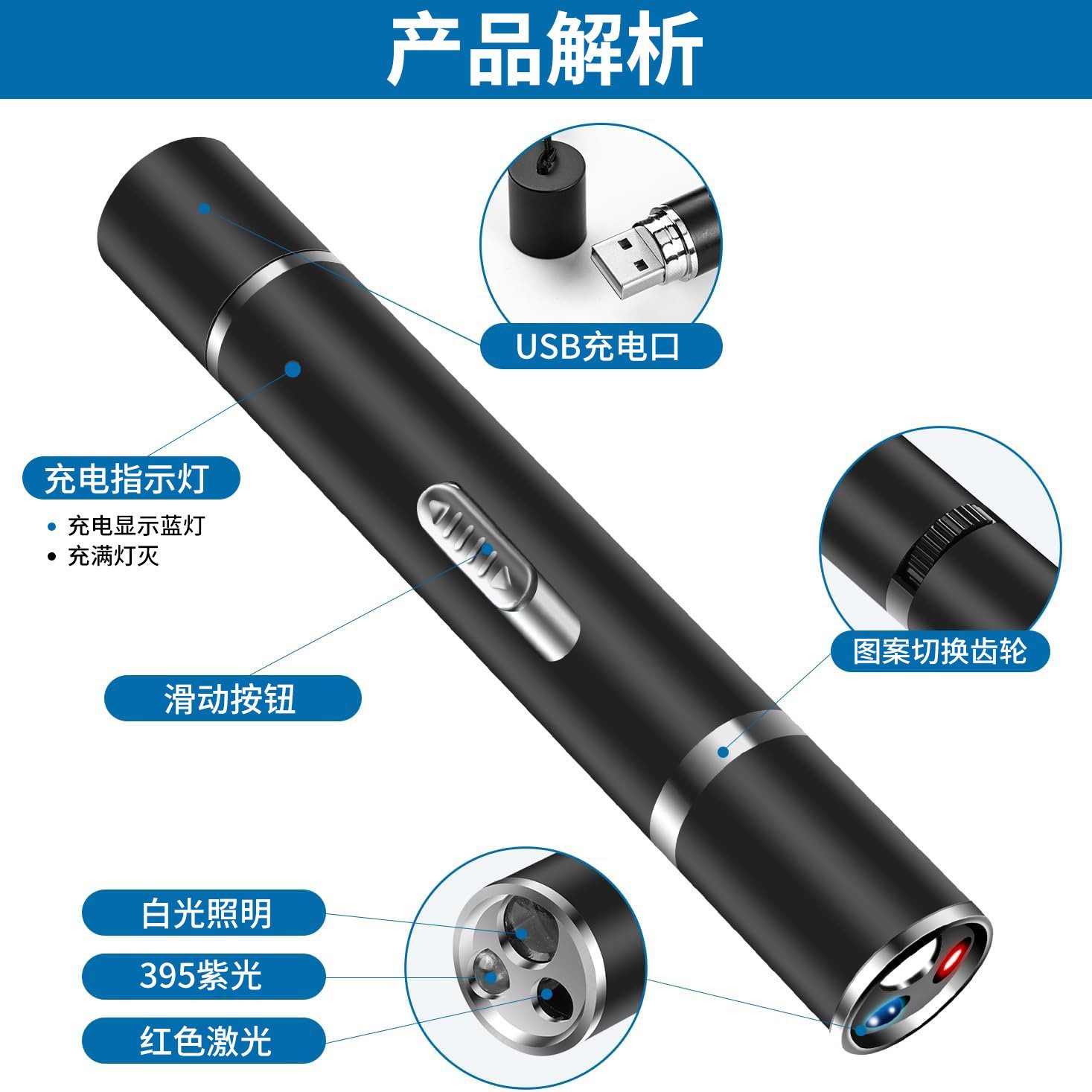 Игрушка для кошек, лазерная указка, забавная кошачья палочка, черный лазерный свет с несколькими узорами, инфракрасный фиолетовый свет, освещение, зарядка через USB, ручка для кошек