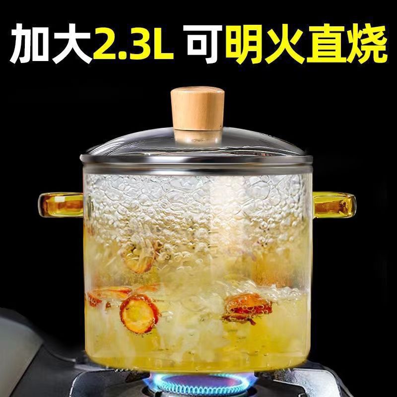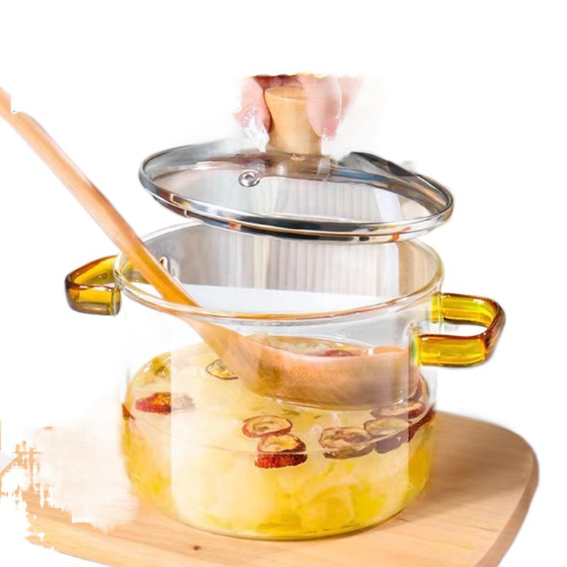 Главная страница > Кастрюля из боросиликатного стекла, устойчивая к высоким температурам стеклянная кастрюля, прозрачная, нагреваемая кастрюля для супа на открытом огне, кастрюля для супа на газовой плите Jueqin
