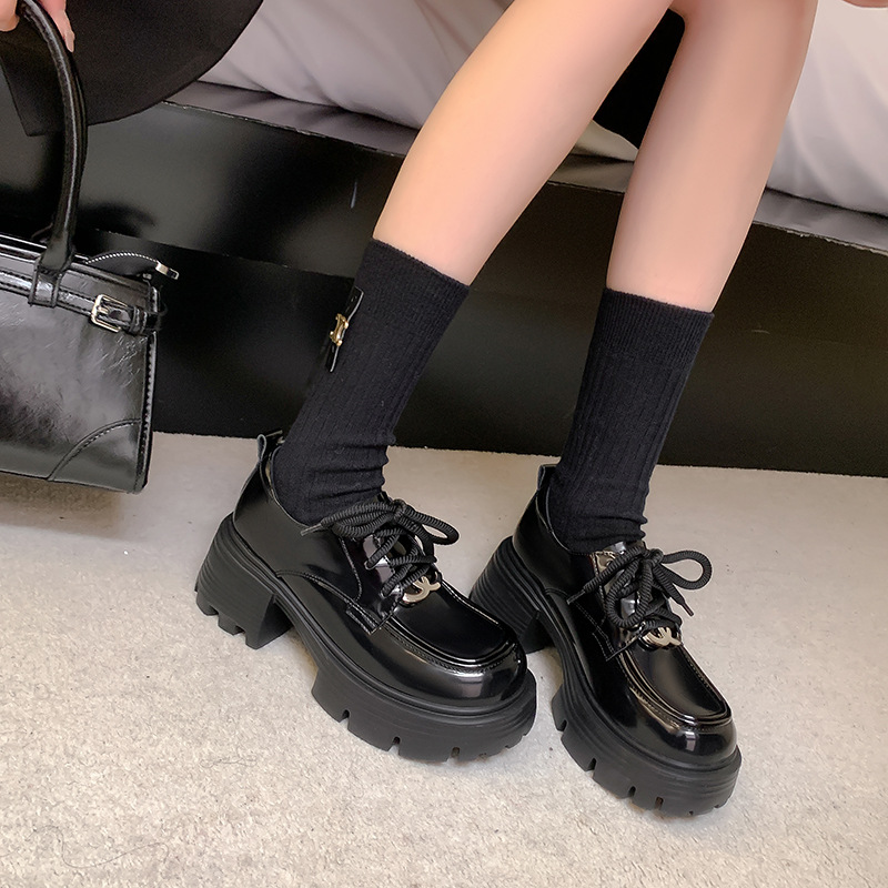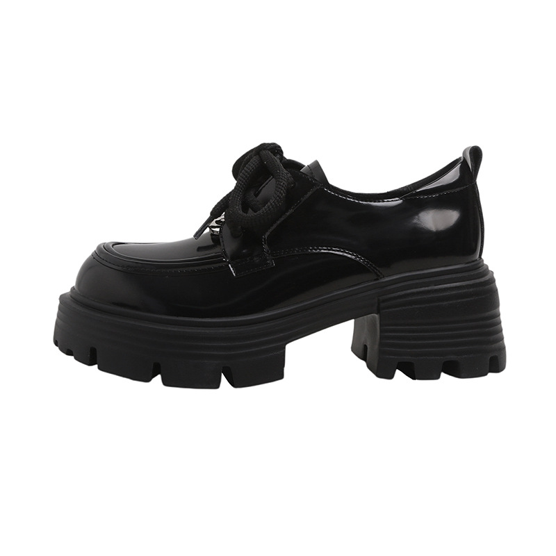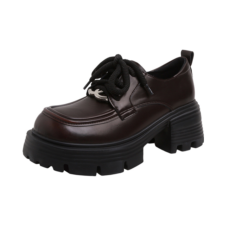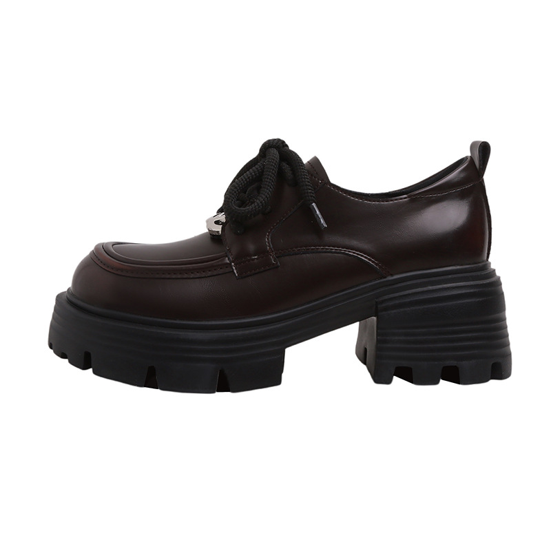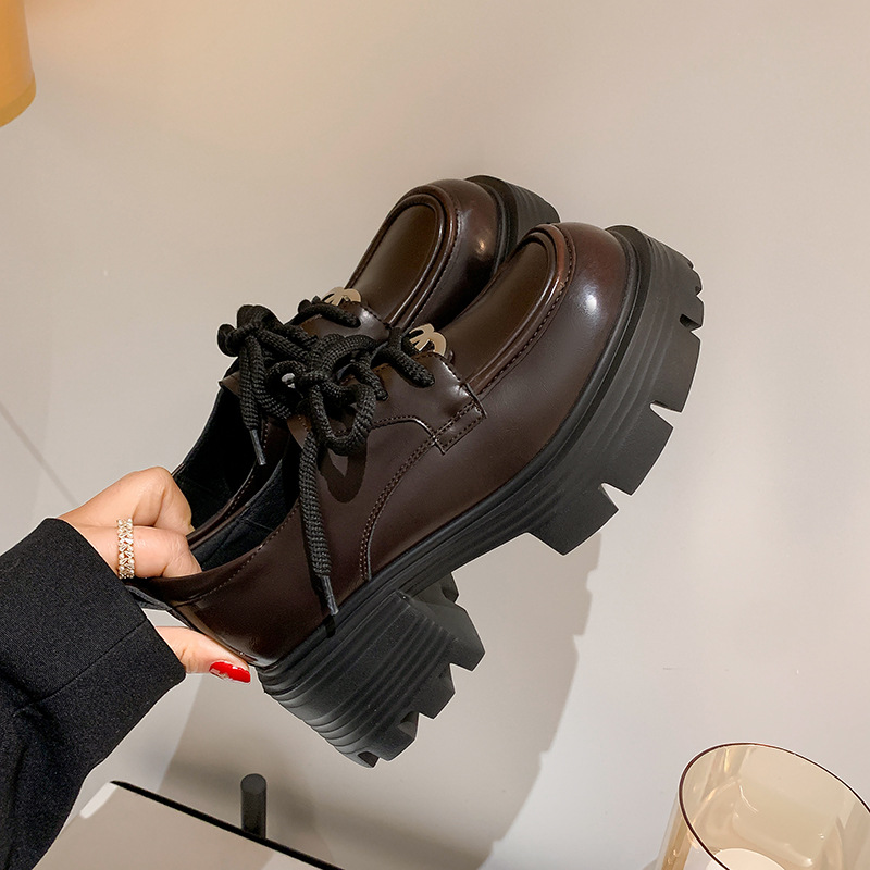 Главная страница > Кожаные туфли на толстой подошве Lefu Женская 2024 осень новый дикий толстый каблук модный круглый шнуровка кожаные туфли в британском стиле