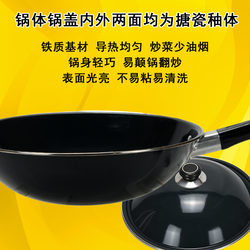 Главная страница > Jiajie эмалированная плоская кастрюля с железным горшком эмалированная технология без покрытия без ржавчины с крышкой для газовой плиты