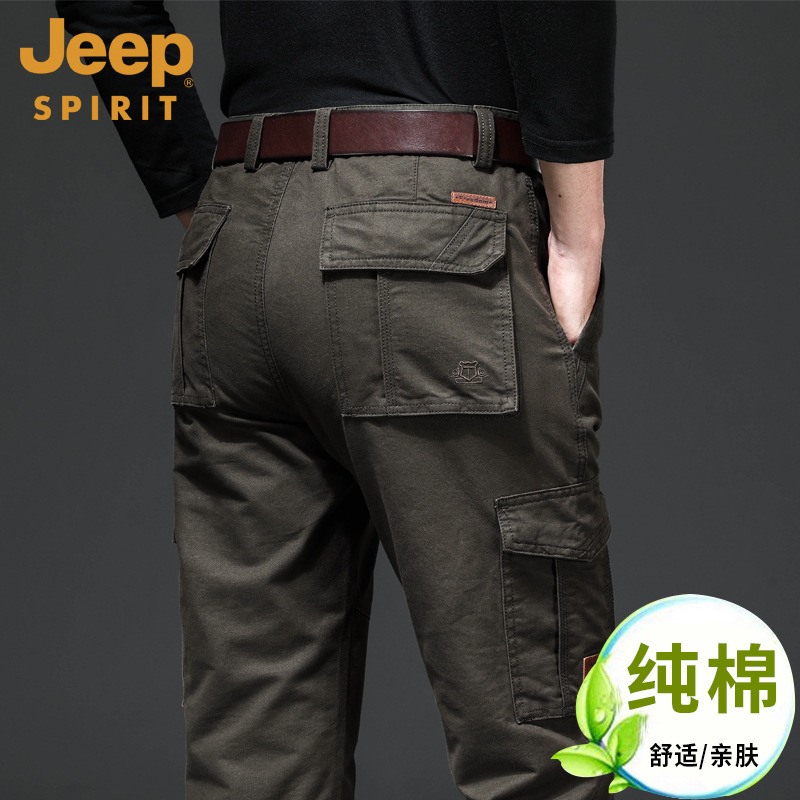 Jeep spirit мульти-сумка повседневные брюки мужские весенне-летний тонкий инструмент брюки весенне-осенний толстый хлопок свободный большой размер