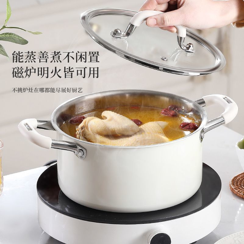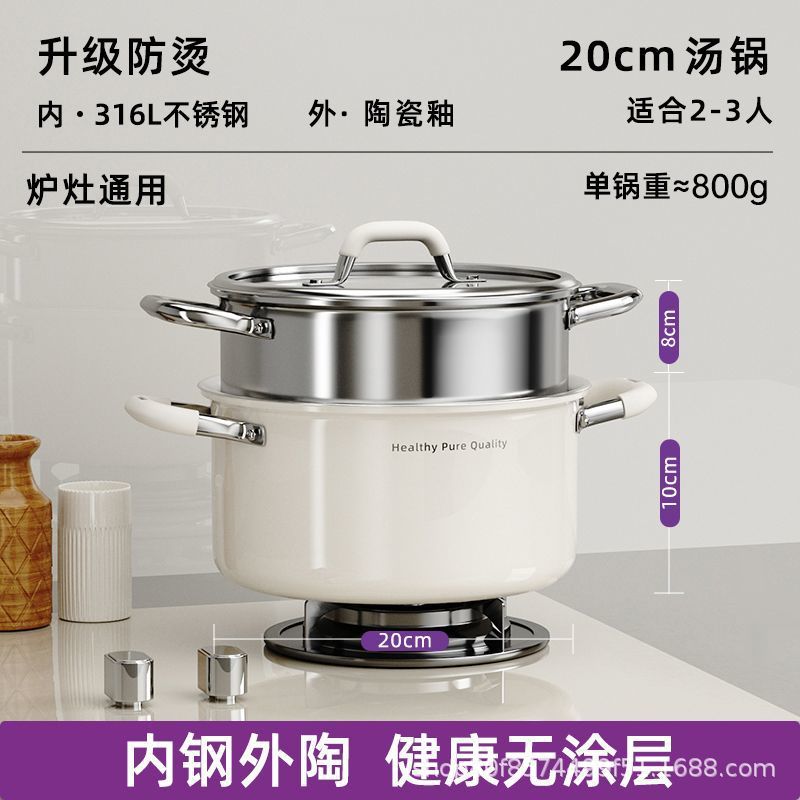 Главная страница > Керамическая глубокая кастрюля для супа из нержавеющей стали 316L без покрытия, для домашней газовой плиты и индукционной плиты, с двумя ручками, для варки на пару и тушения