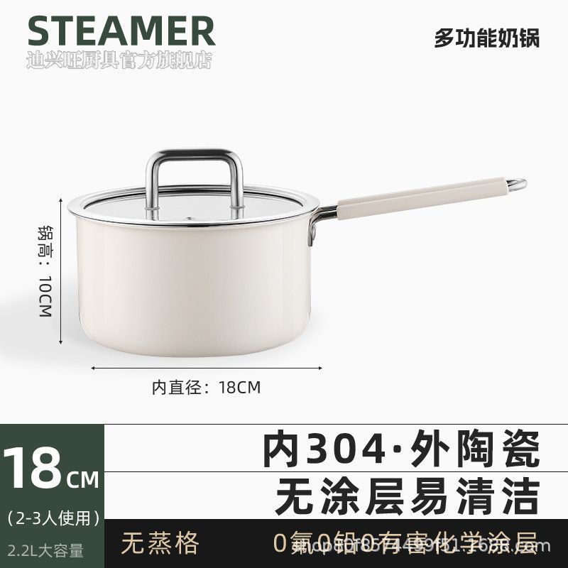 Белый окрашенный молочный котелок 18 см, двухслойный