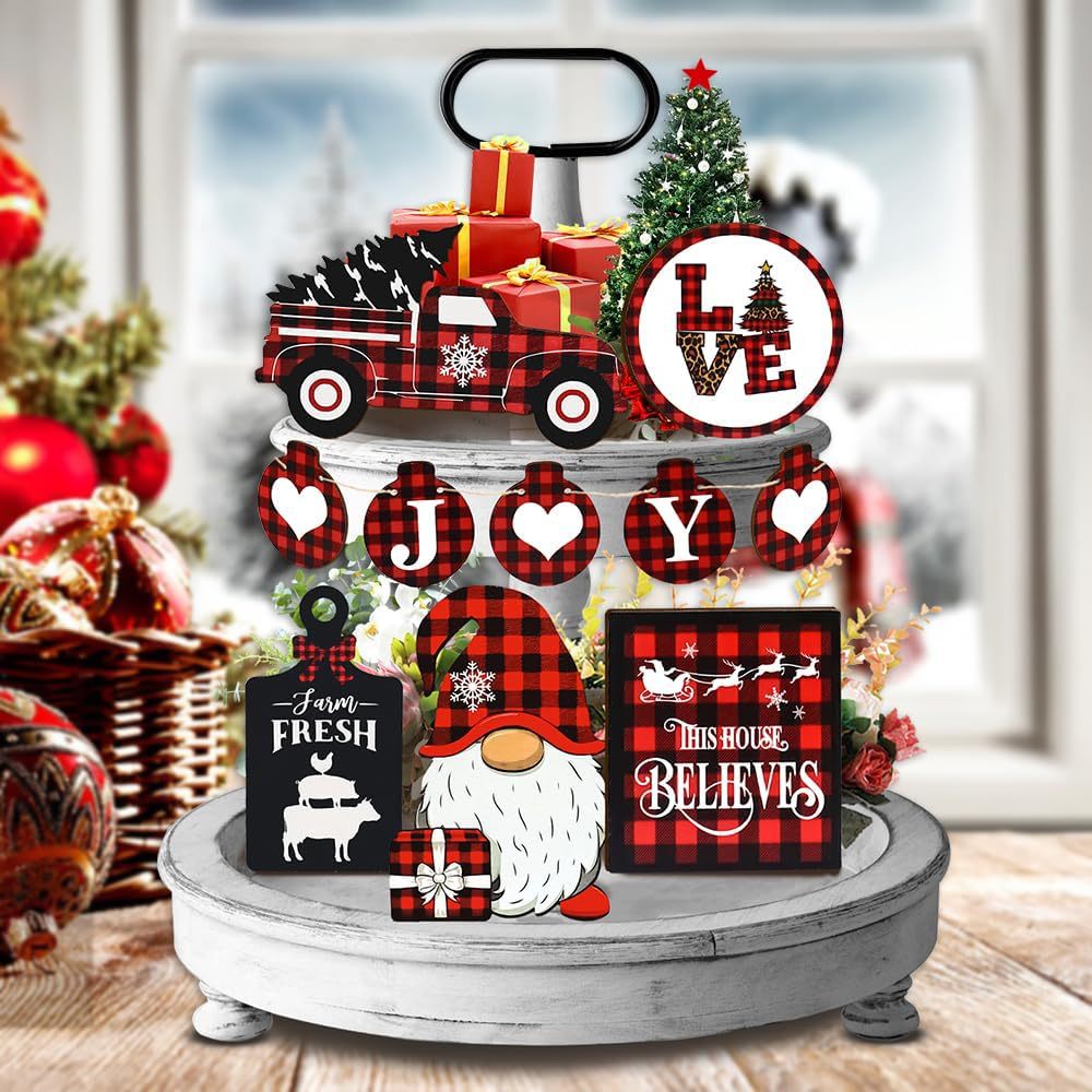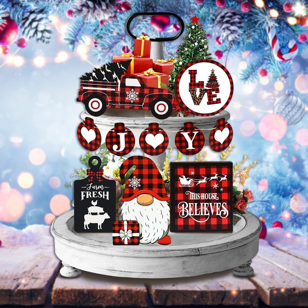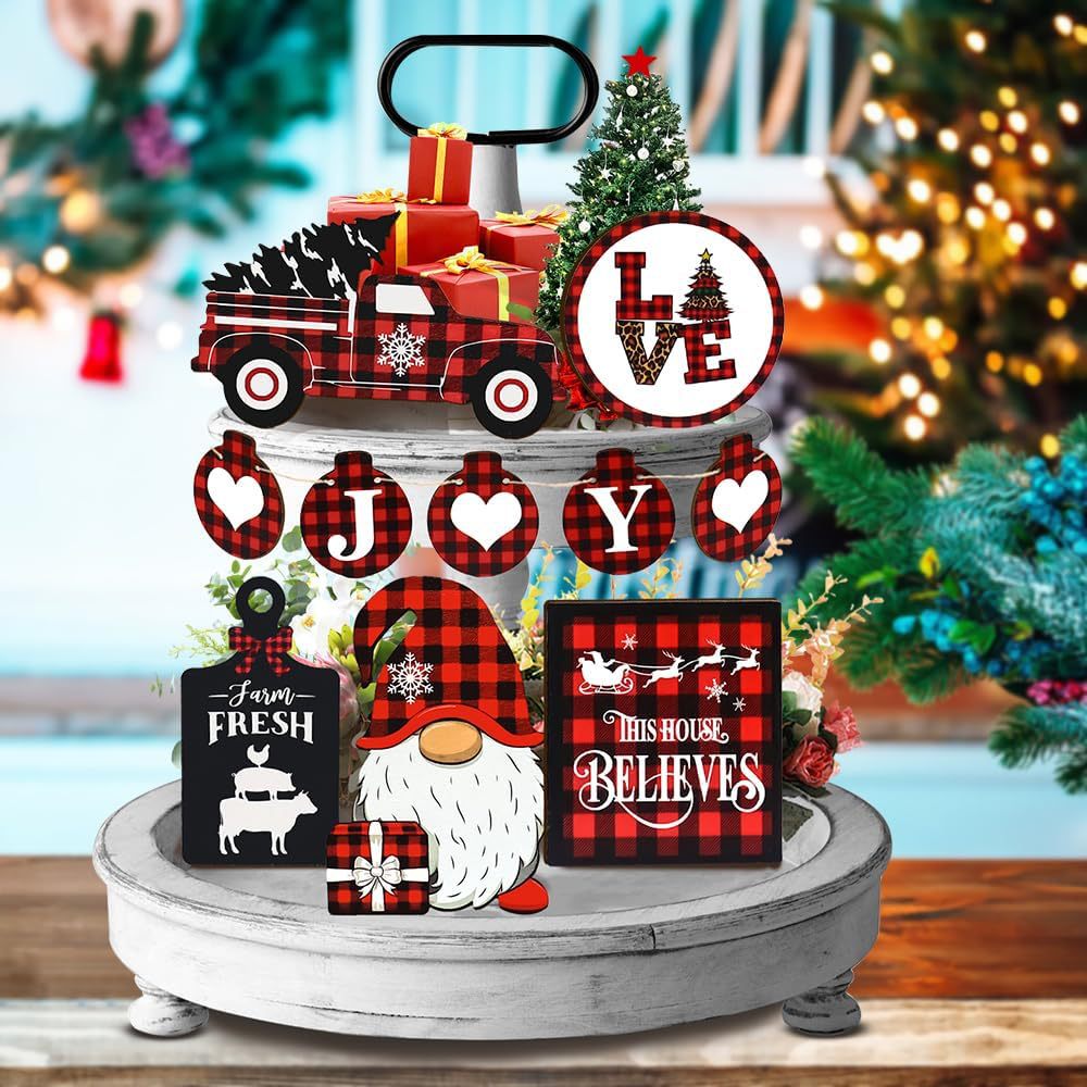 10 шт., рождественские многослойные украшения для подноса, деревянная вывеска для фермерского дома, подходящая для рождественских украшений для кухонной столовой