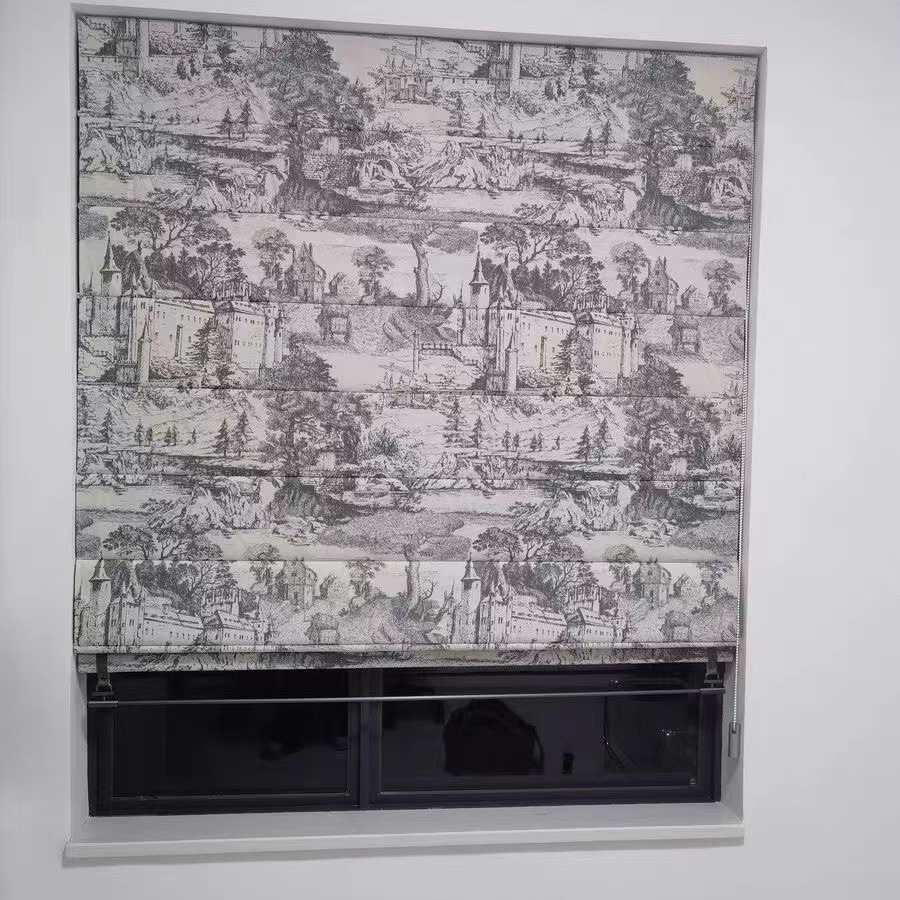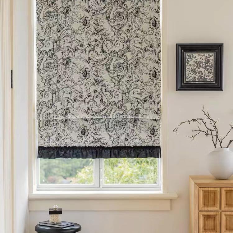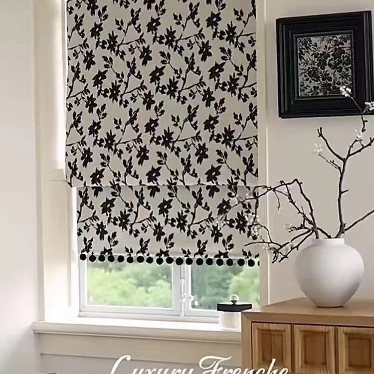 Главная страница > 2025 новых черно-белых винтажных кашемировых римских жалюзи во французском стиле для кабинетных эркеров, регулируемых штор, подтягивающихся штор и складных штор.