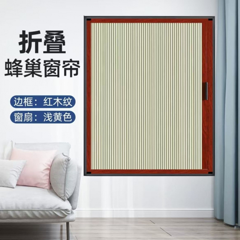 Утолщенная рама цвета красного дерева + полностью затемняющий желтый сотовый (ветрозащитный + теплоизоляция)